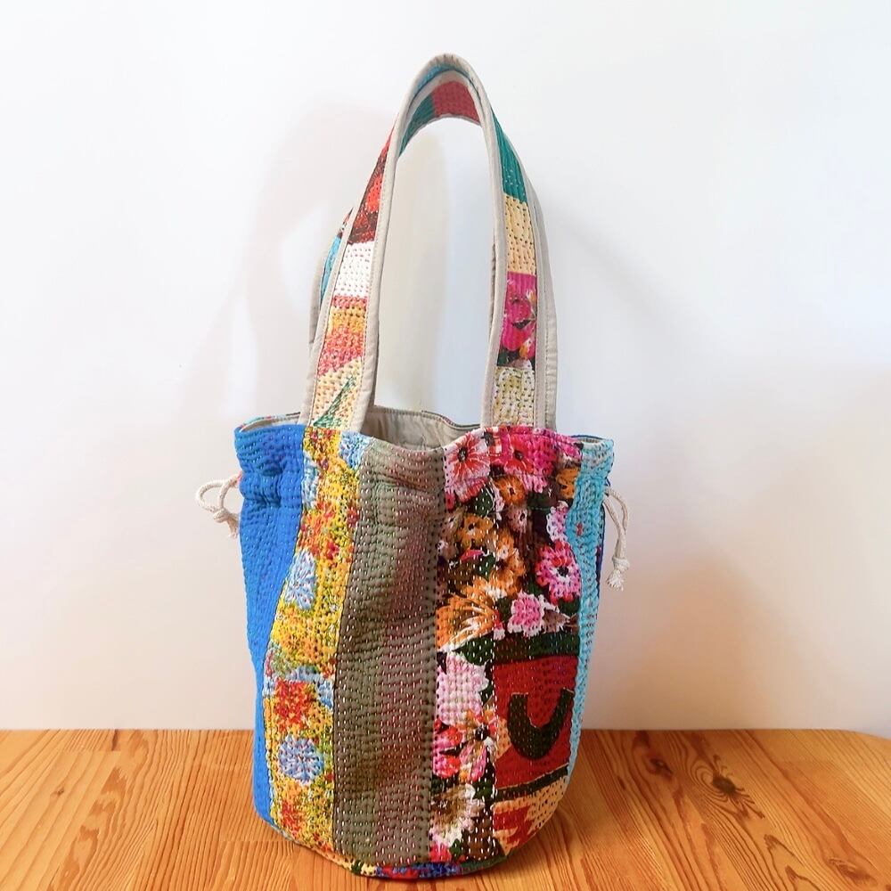 丸底が可愛い巾着トートバックです。