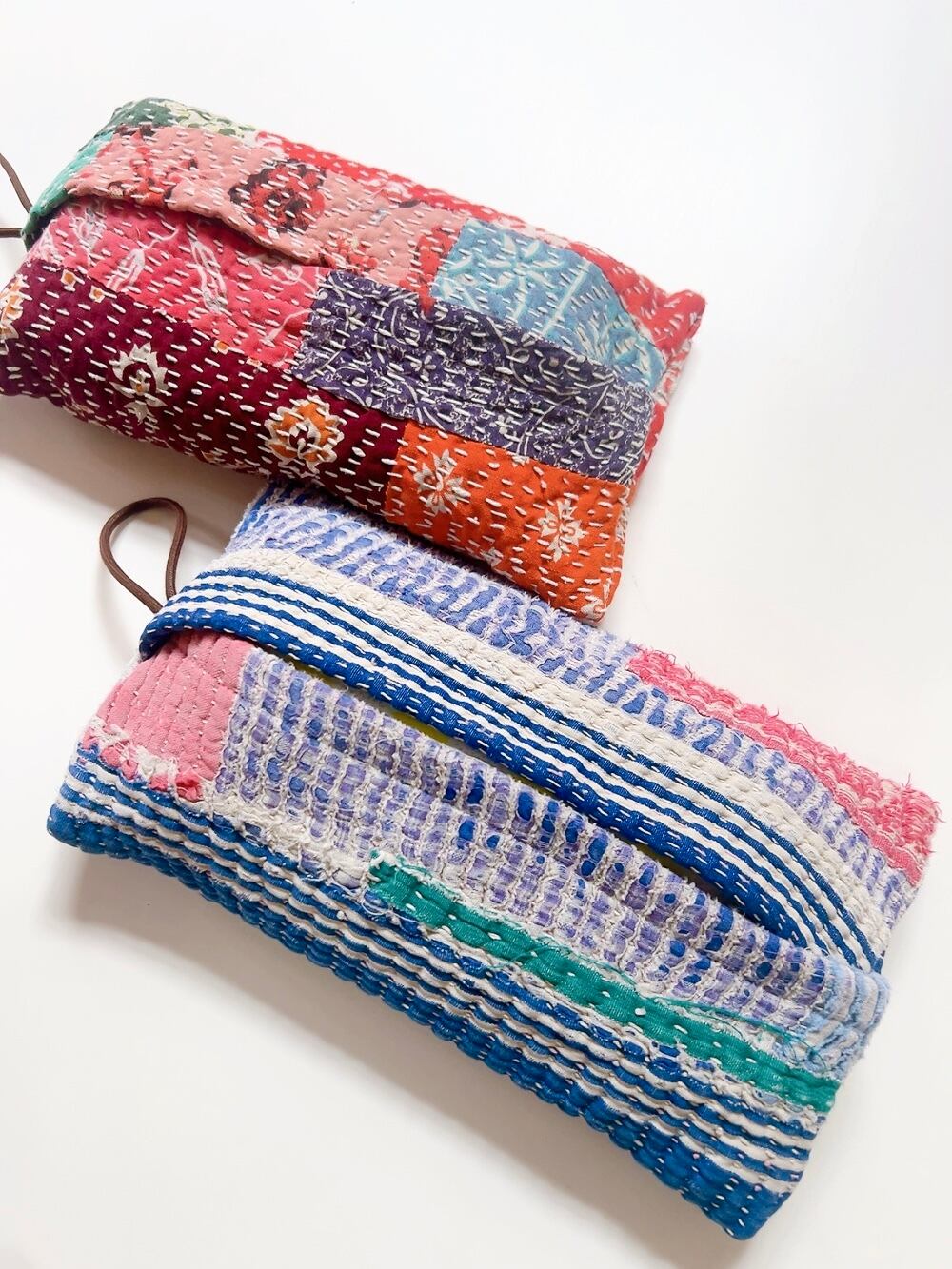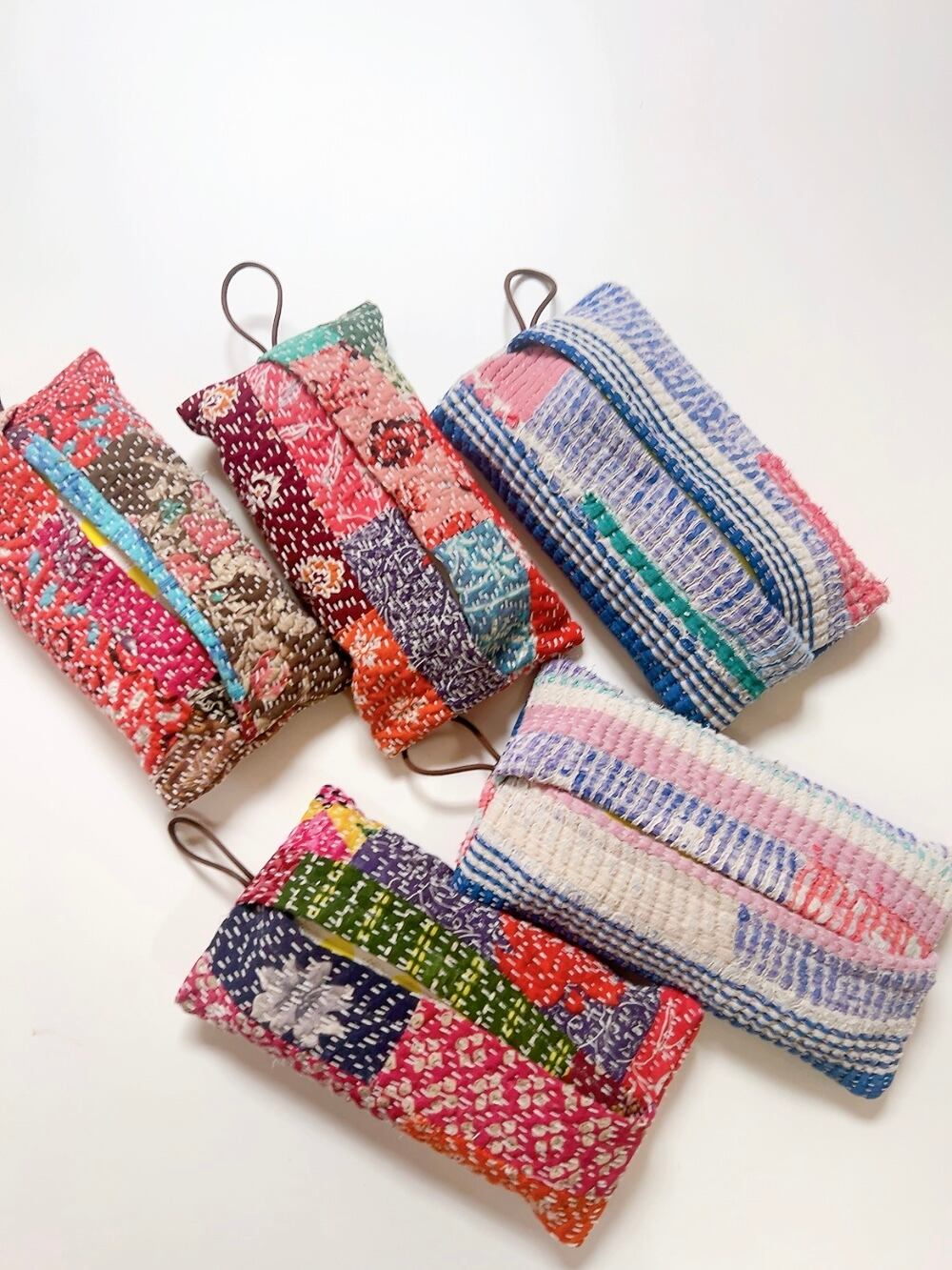 ひと針ひと針手仕事で仕上げられた、インドのラリーキルトを使ったソフトティッシュカバーです。