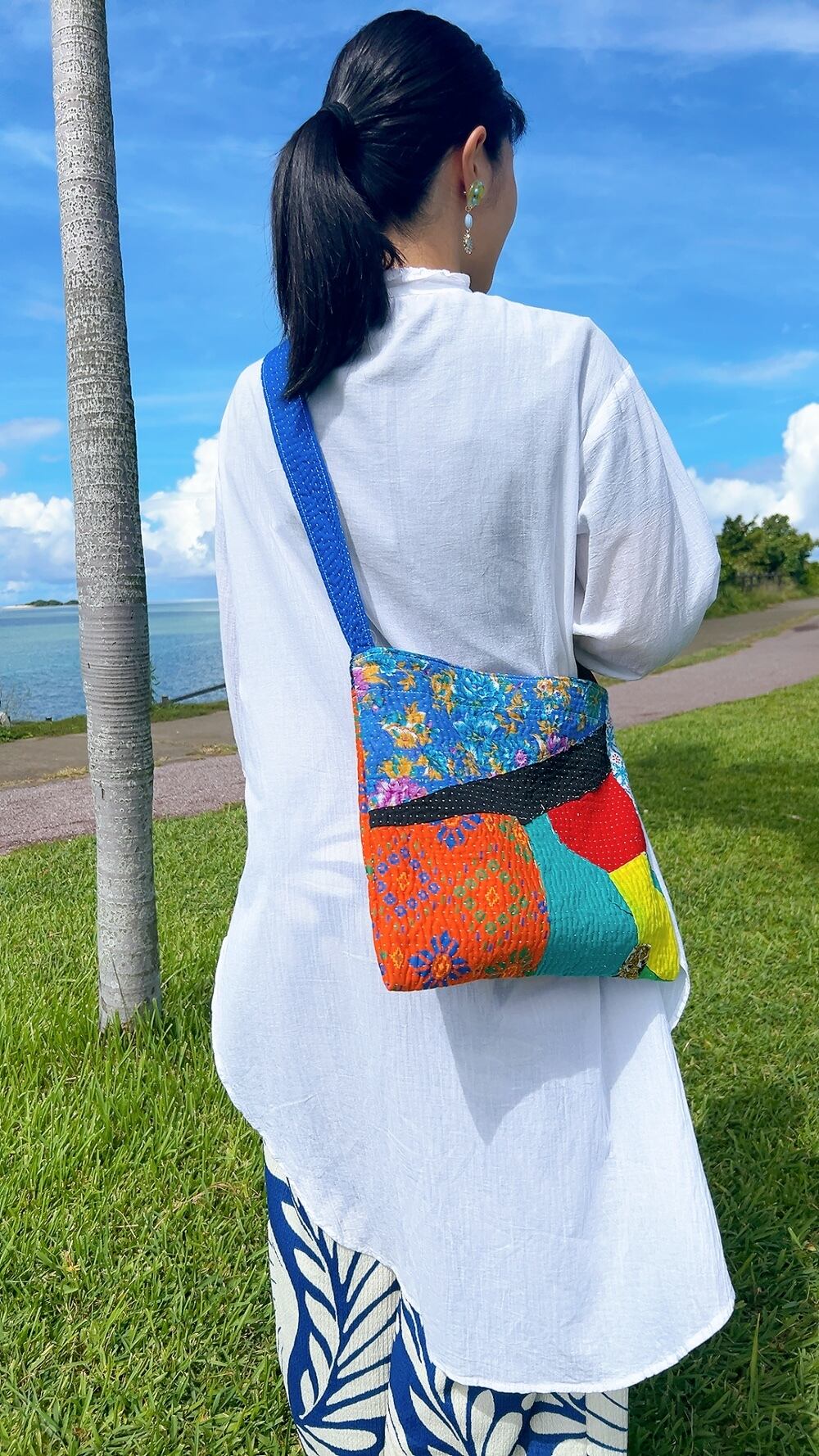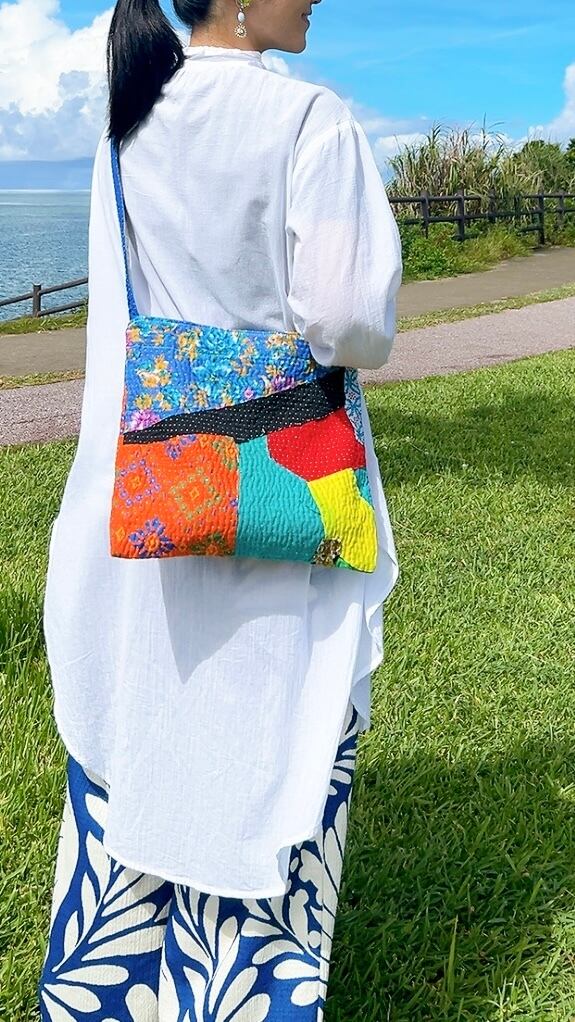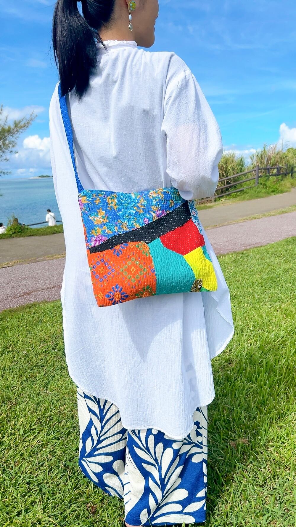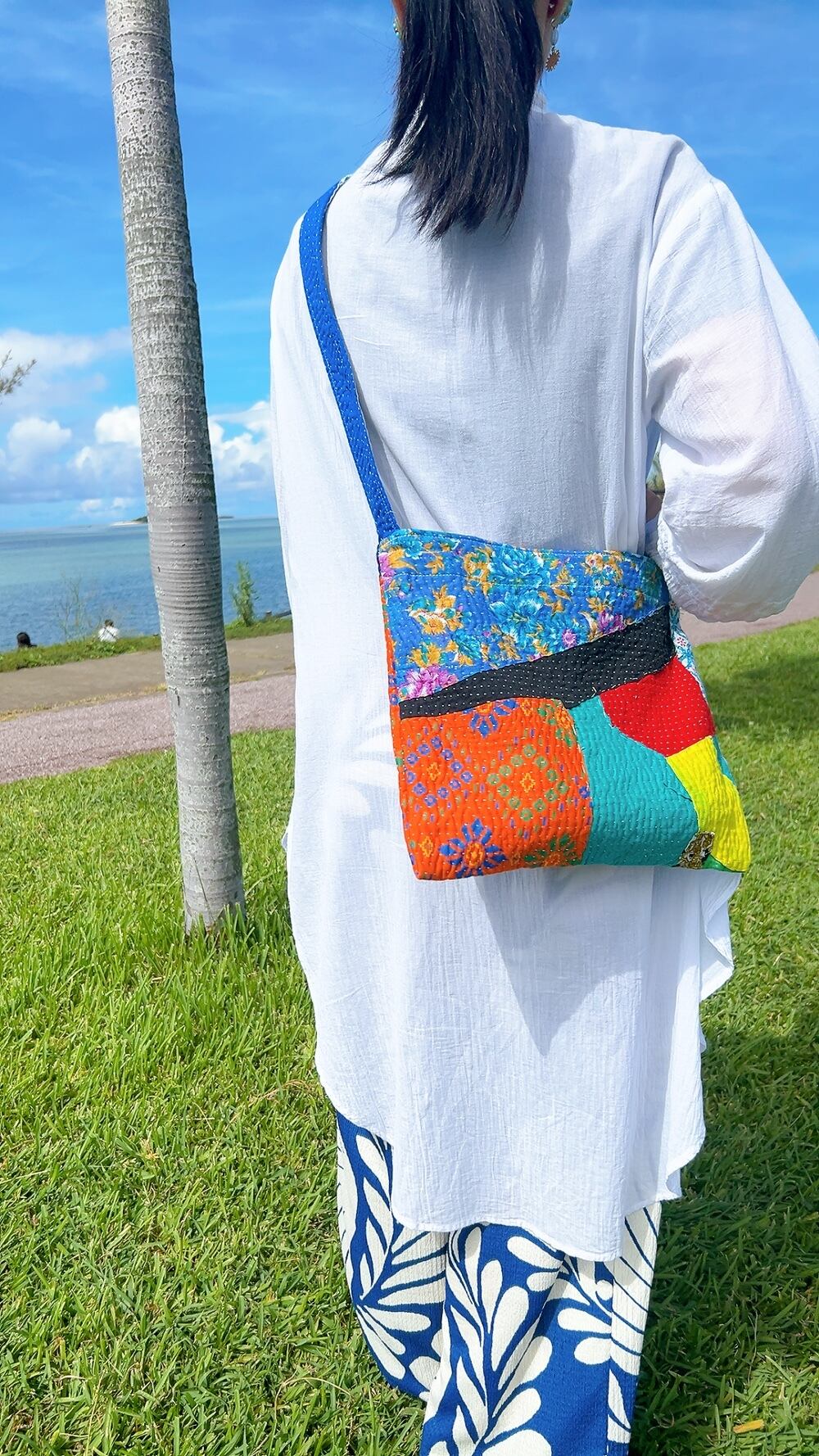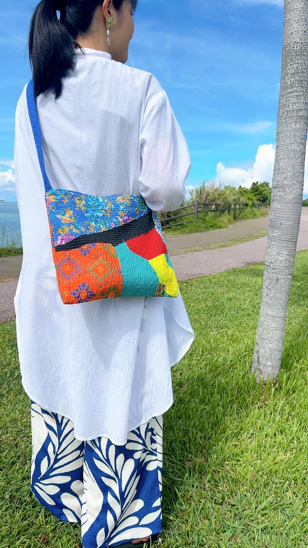 ラリーキルトを使用した、シンプルで可愛らしいショルダーバッグです。