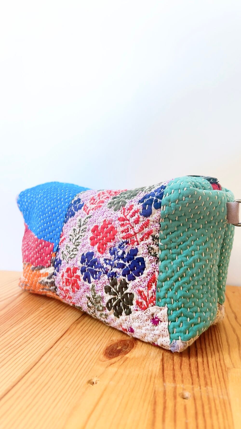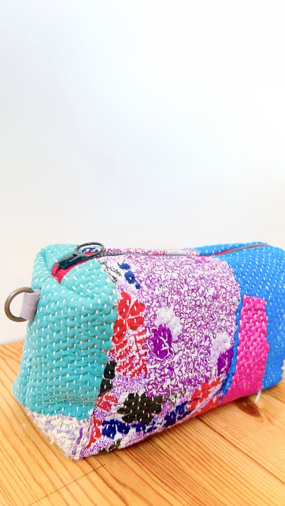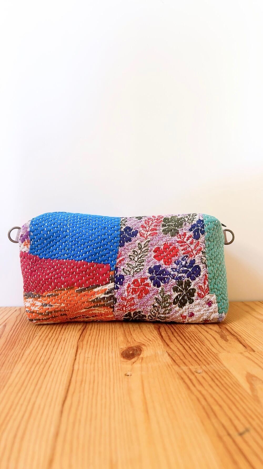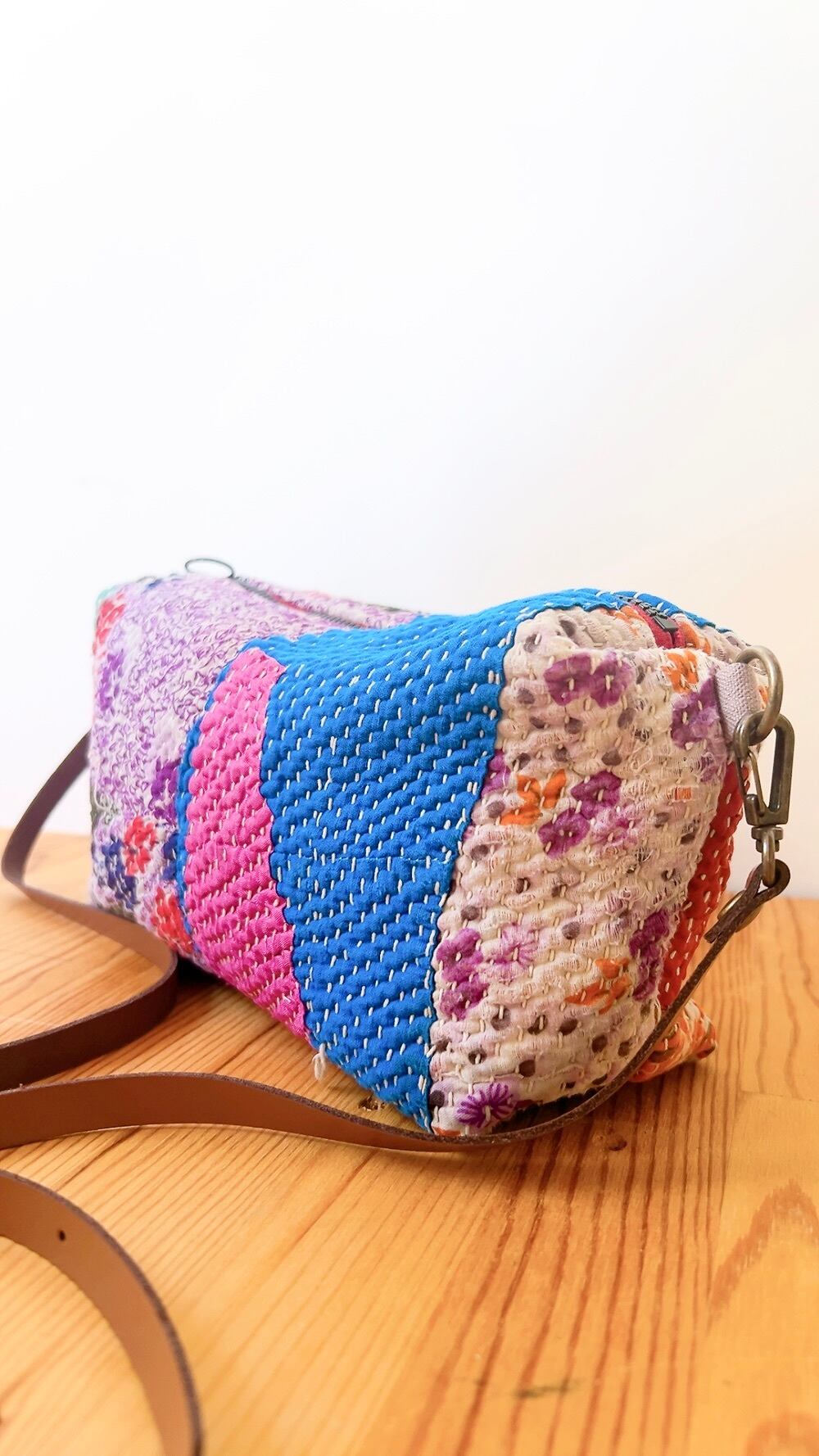 たっぷりマチが魅力のショルダーバッグです!ラリーキルトの独特なデザインがアクセントとなり、爽やかな色合いがこれからの季節にピッタリ。気分も上がります。