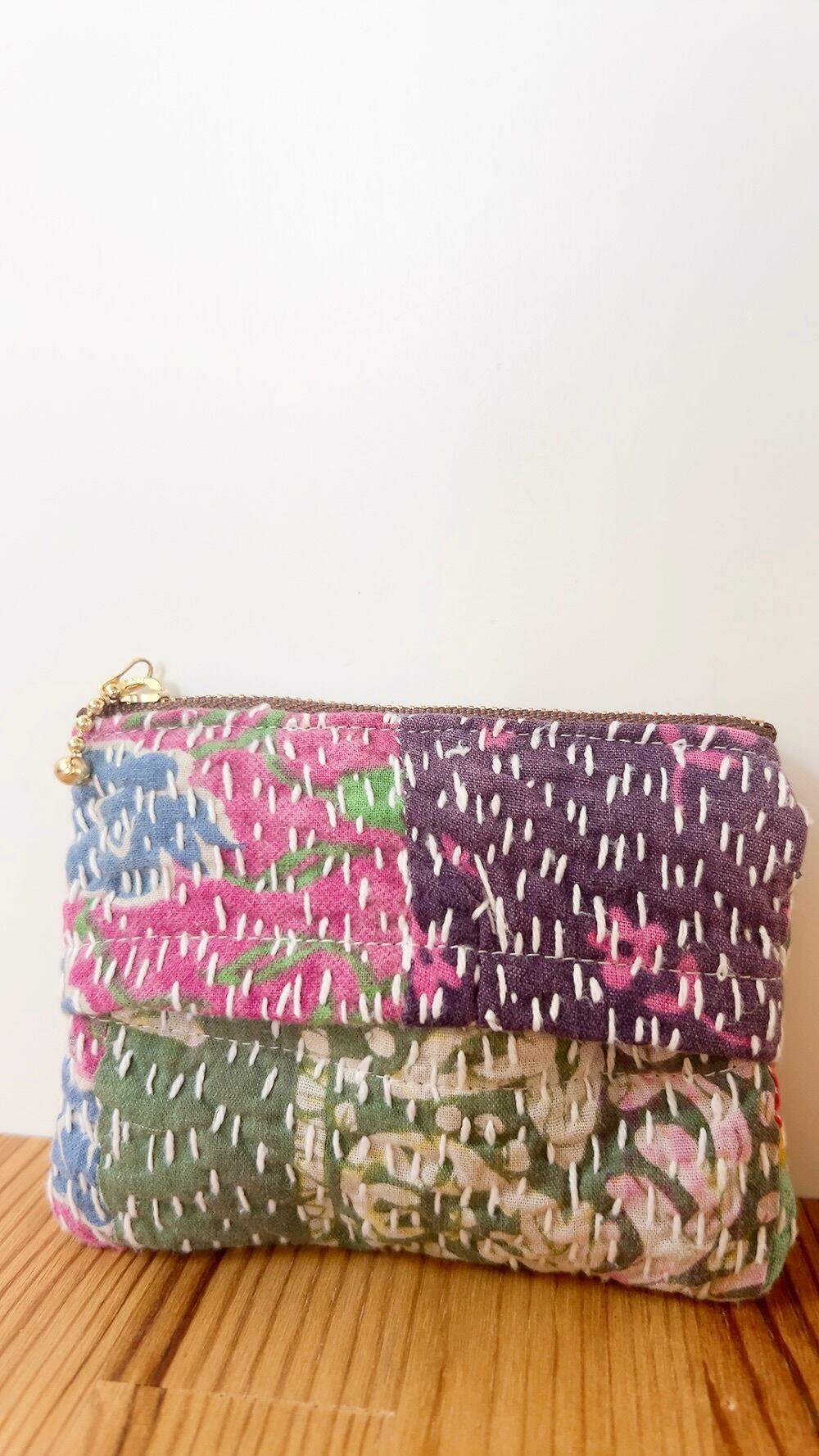 インドの伝統刺し子、ラリーキルトを使った、ハンドメイドのポケットティッシュカバー。