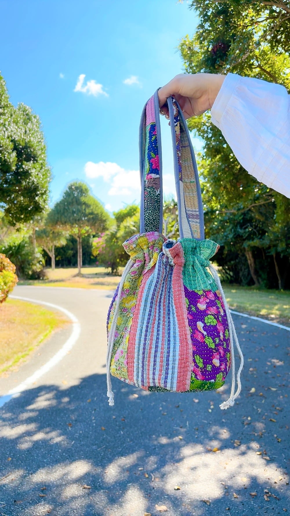 丸底が可愛い巾着トートバックです。