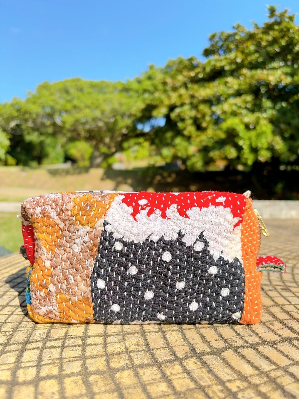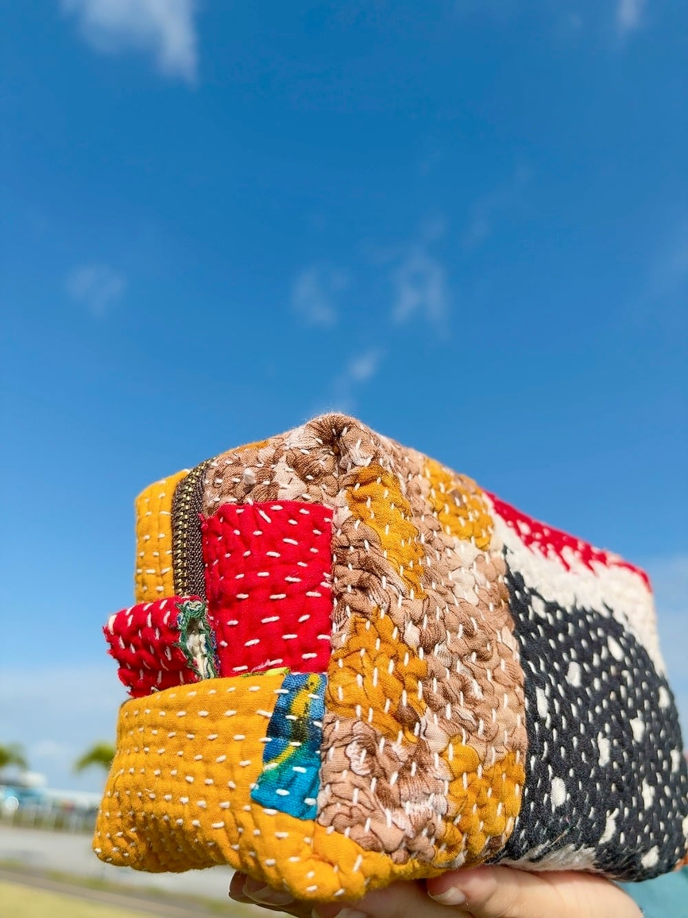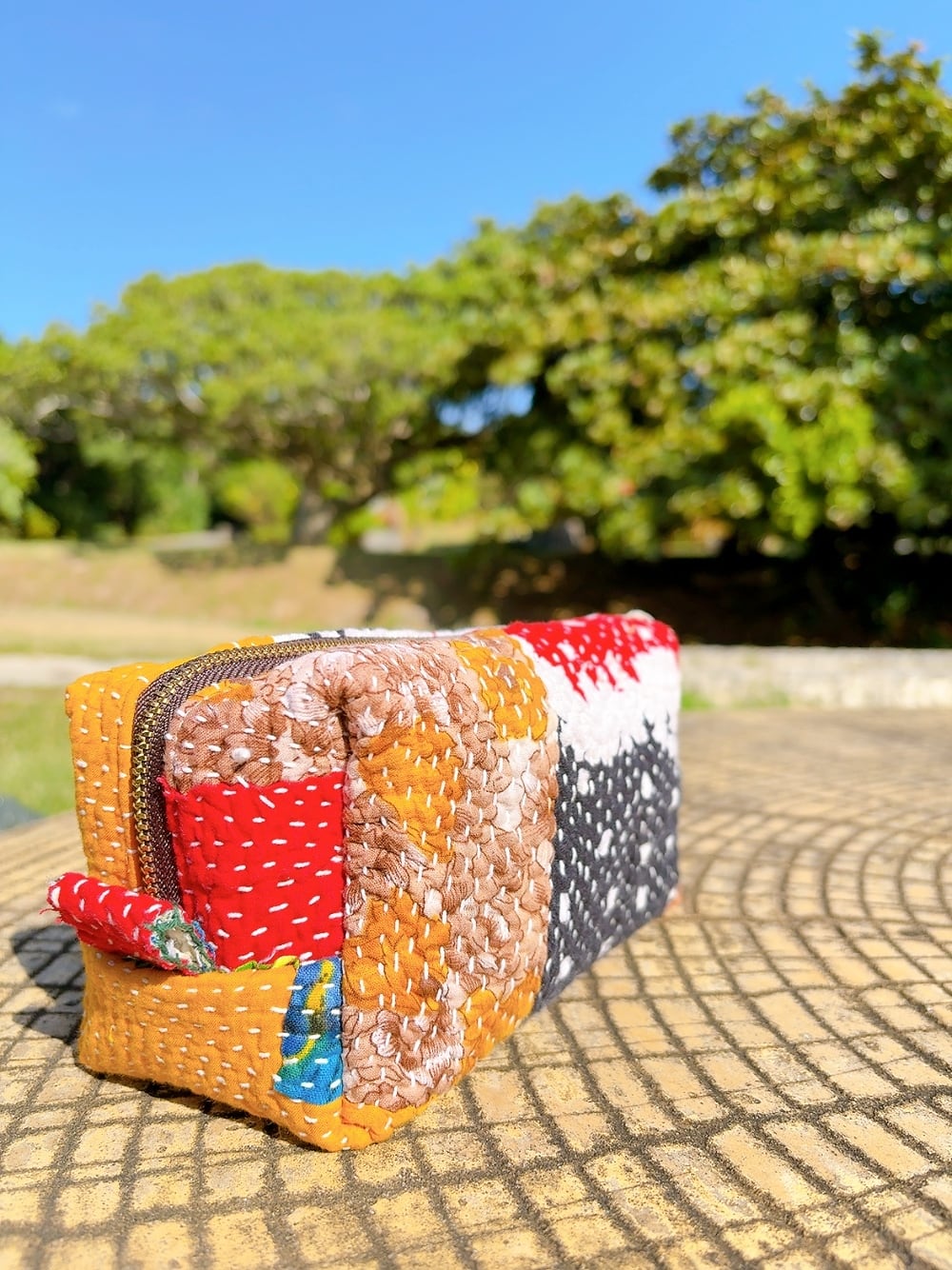 ボックスポーチは、ラリーキルトの魅力を存分に活かした、個性的なアイテムです。多彩なパッチワーク柄が施され、手作りの温かみを感じることができます。小物やコスメ、貴重品をスマートに収納できるので、外出時には欠かせない相棒となります。