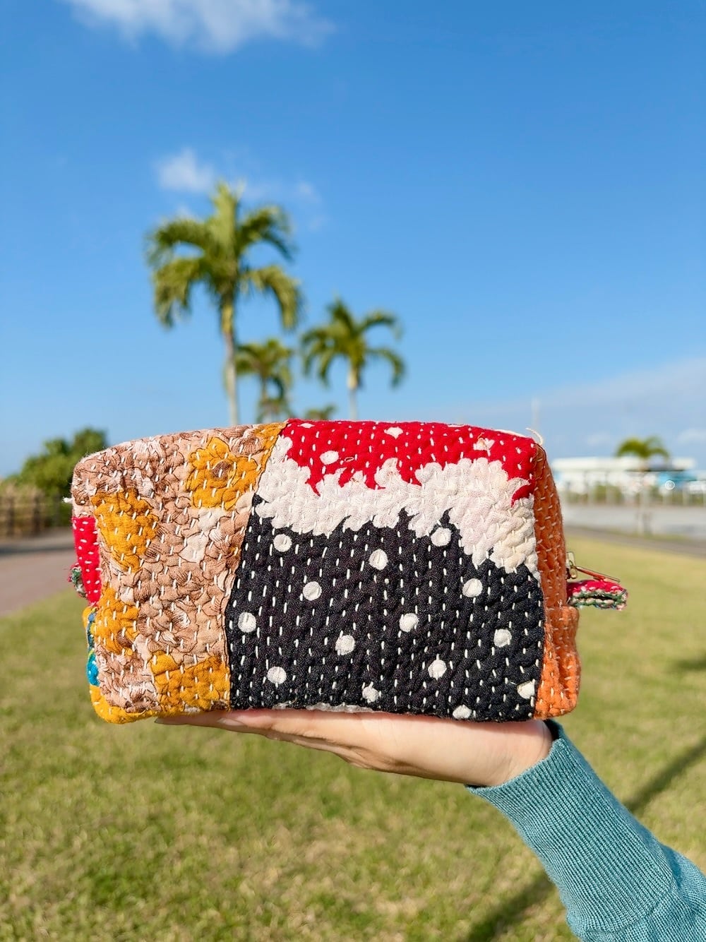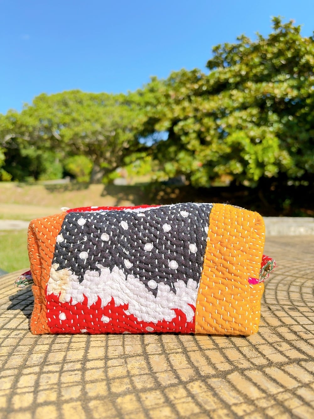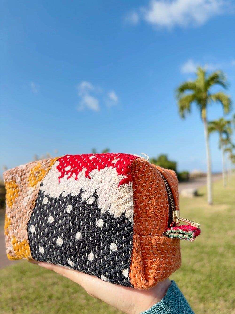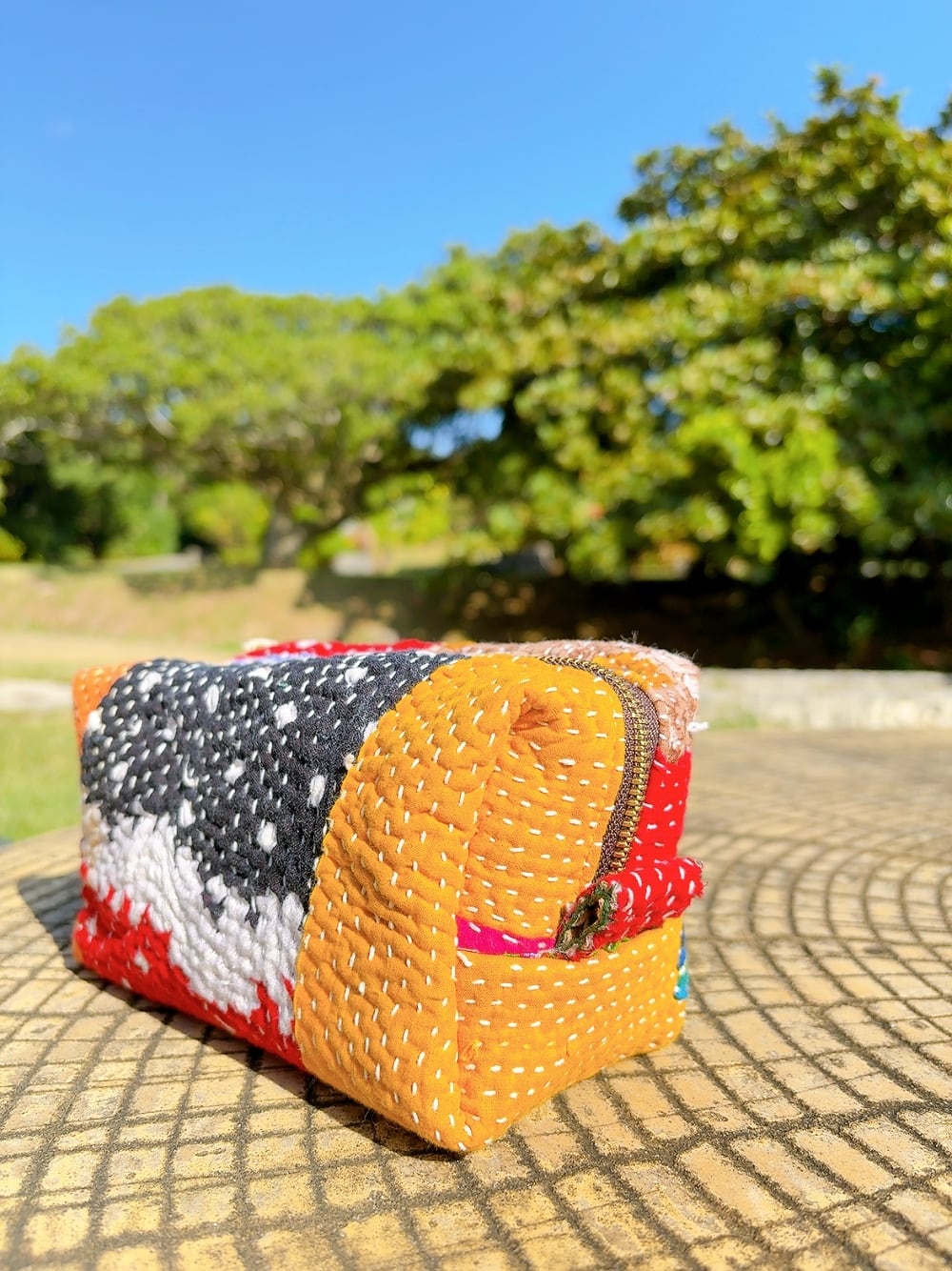 ボックスポーチは、ラリーキルトの魅力を存分に活かした、個性的なアイテムです。多彩なパッチワーク柄が施され、手作りの温かみを感じることができます。小物やコスメ、貴重品をスマートに収納できるので、外出時には欠かせない相棒となります。