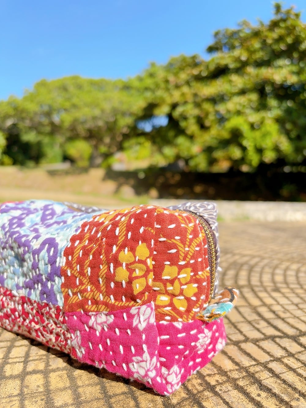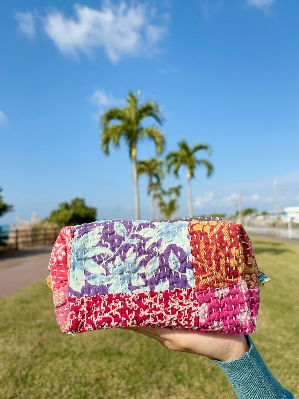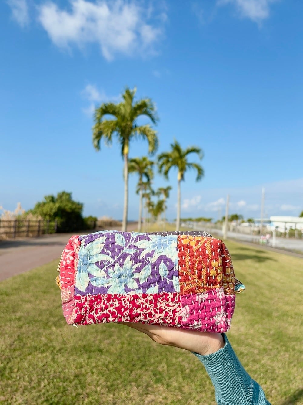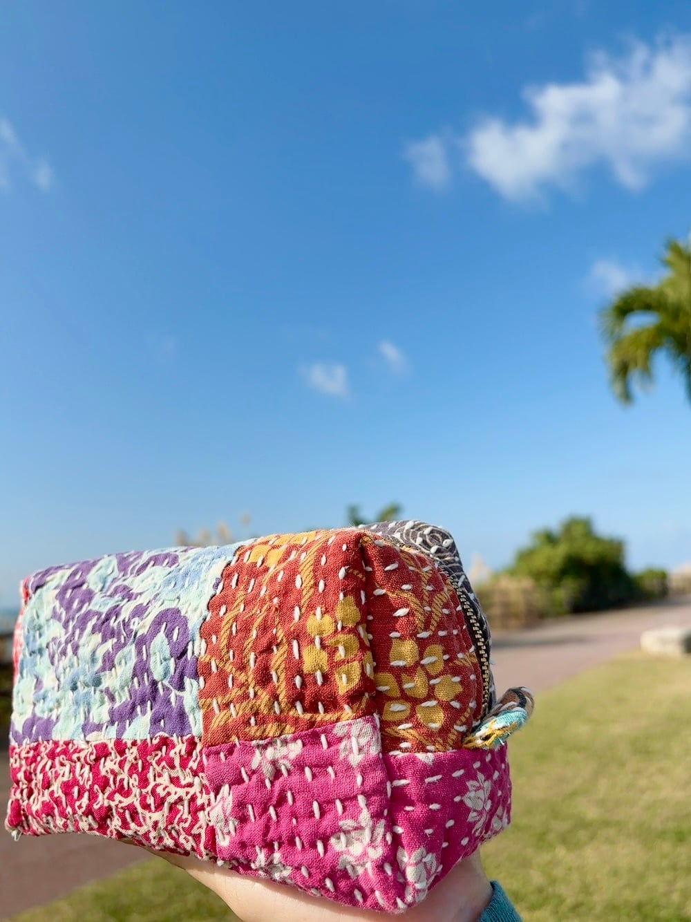 ボックスポーチは、ラリーキルトの魅力を存分に活かした、個性的なアイテムです。多彩なパッチワーク柄が施され、手作りの温かみを感じることができます。小物やコスメ、貴重品をスマートに収納できるので、外出時には欠かせない相棒となります。