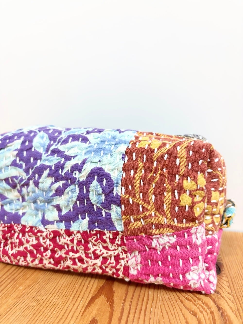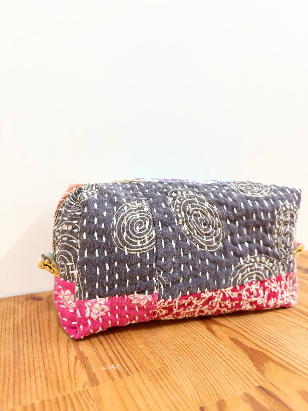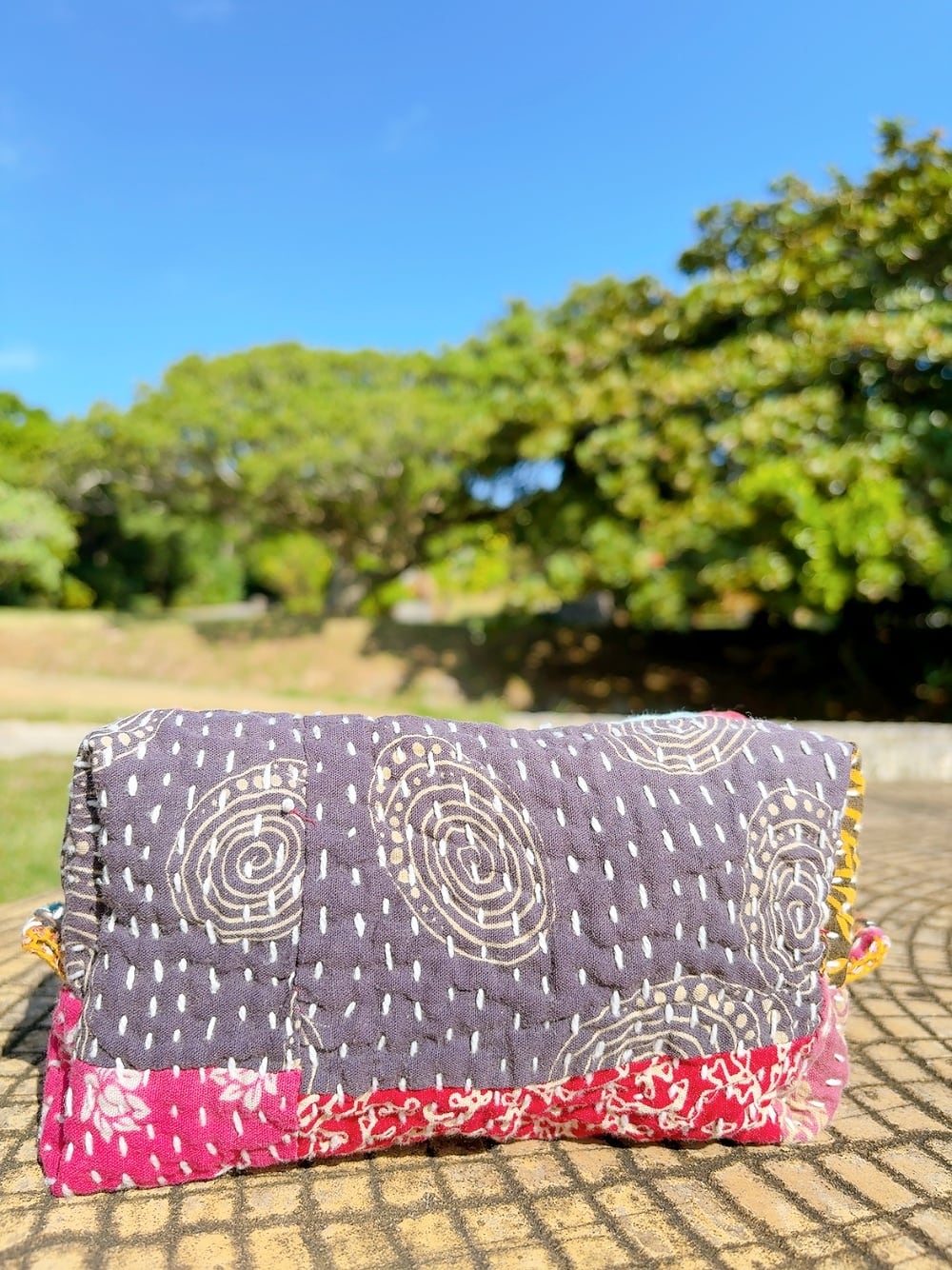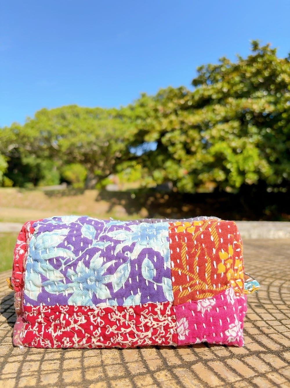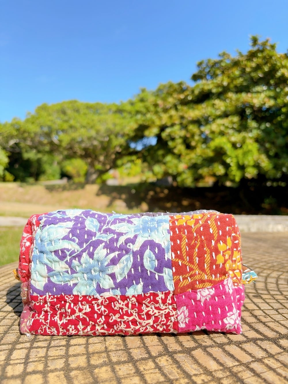 ボックスポーチは、ラリーキルトの魅力を存分に活かした、個性的なアイテムです。多彩なパッチワーク柄が施され、手作りの温かみを感じることができます。小物やコスメ、貴重品をスマートに収納できるので、外出時には欠かせない相棒となります。