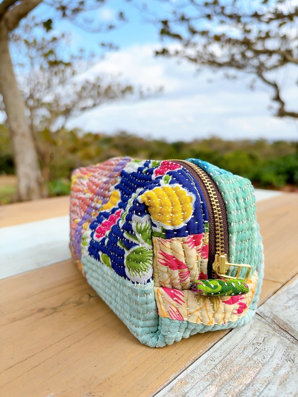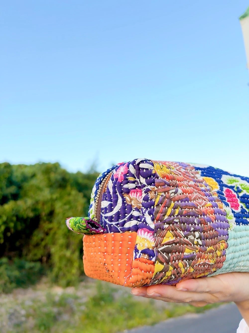 ボックスポーチは、ラリーキルトの魅力を存分に活かした、個性的なアイテムです。多彩なパッチワーク柄が施され、手作りの温かみを感じることができます。小物やコスメ、貴重品をスマートに収納できるので、外出時には欠かせない相棒となります。