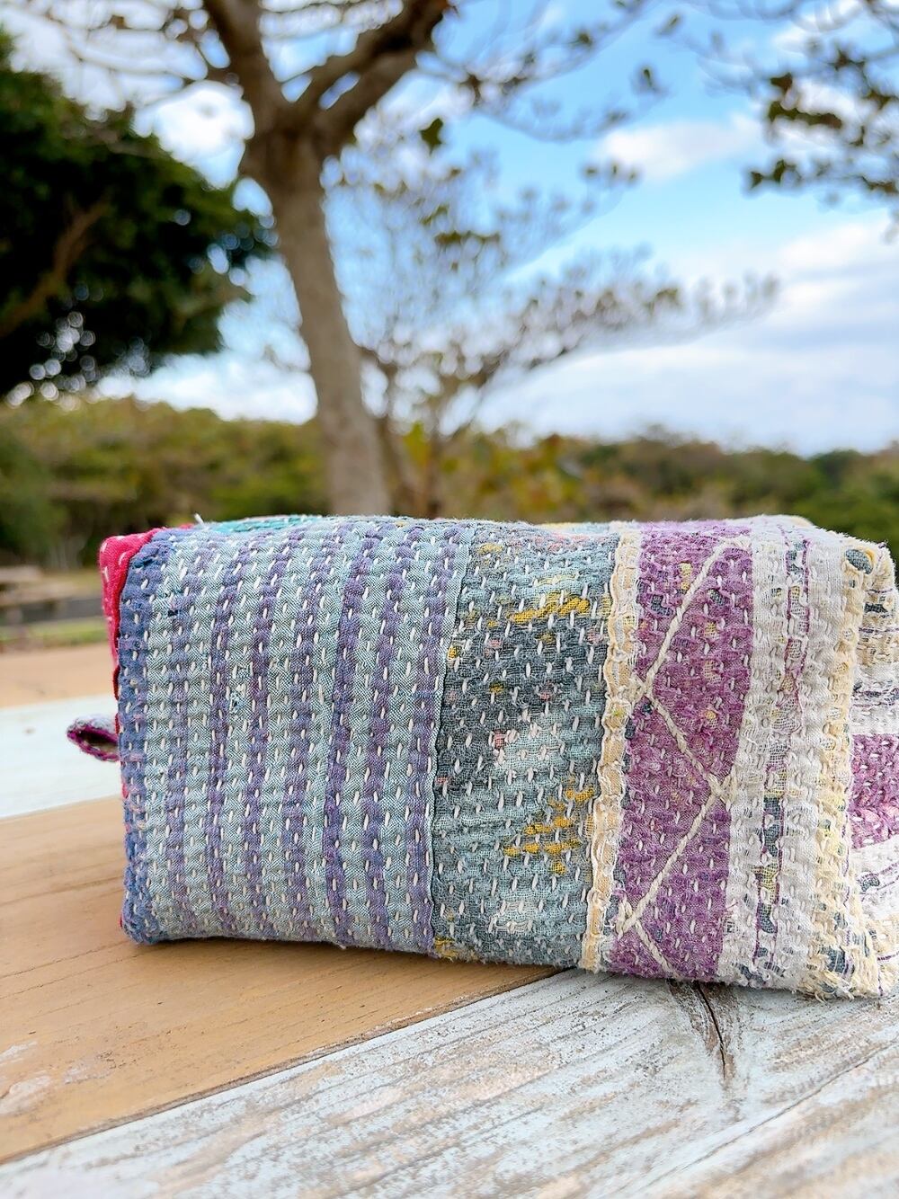 ボックスポーチは、ラリーキルトの魅力を存分に活かした、個性的なアイテムです。多彩なパッチワーク柄が施され、手作りの温かみを感じることができます。小物やコスメ、貴重品をスマートに収納できるので、外出時には欠かせない相棒となります。