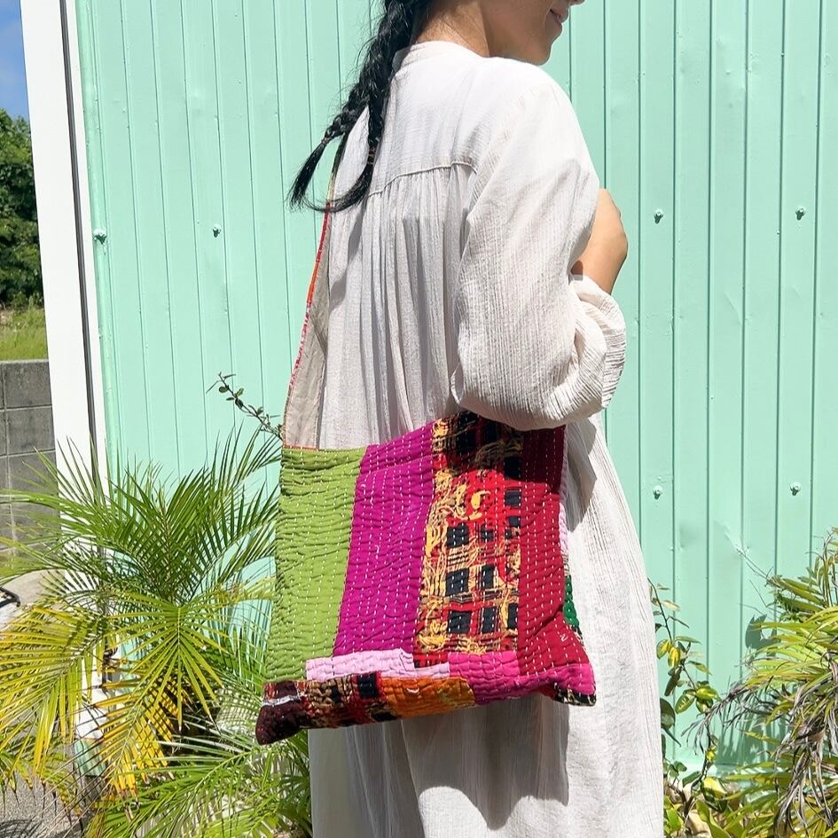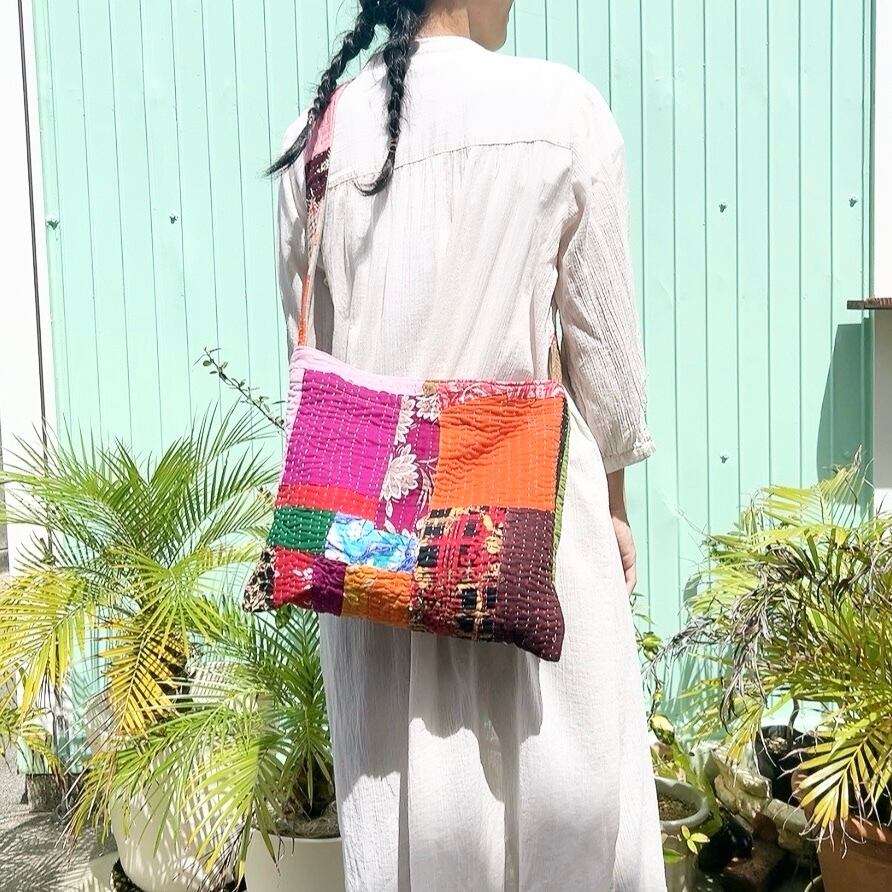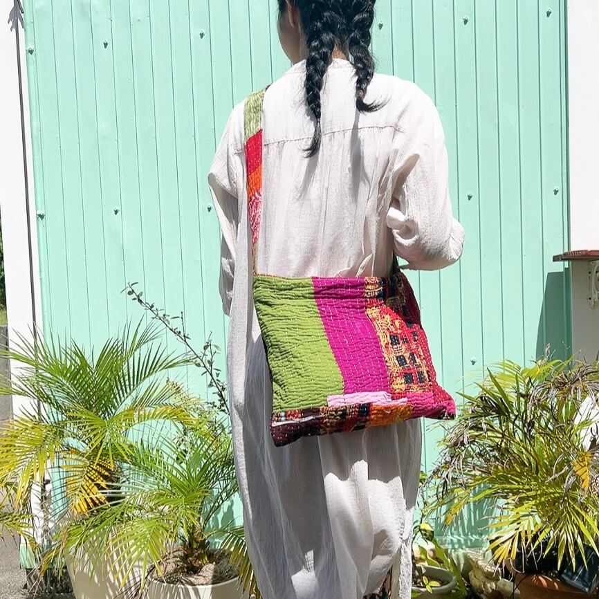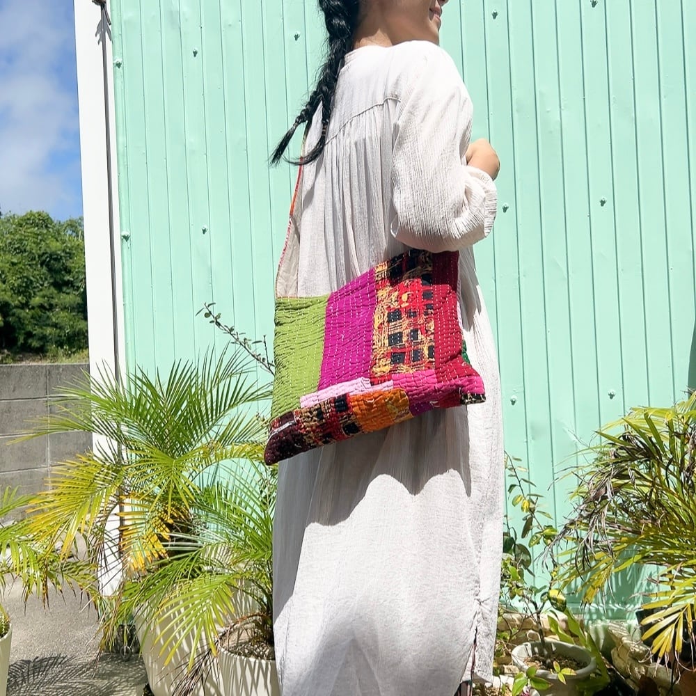 ラリーキルトを使用した、シンプルで可愛らしいショルダーバッグです。