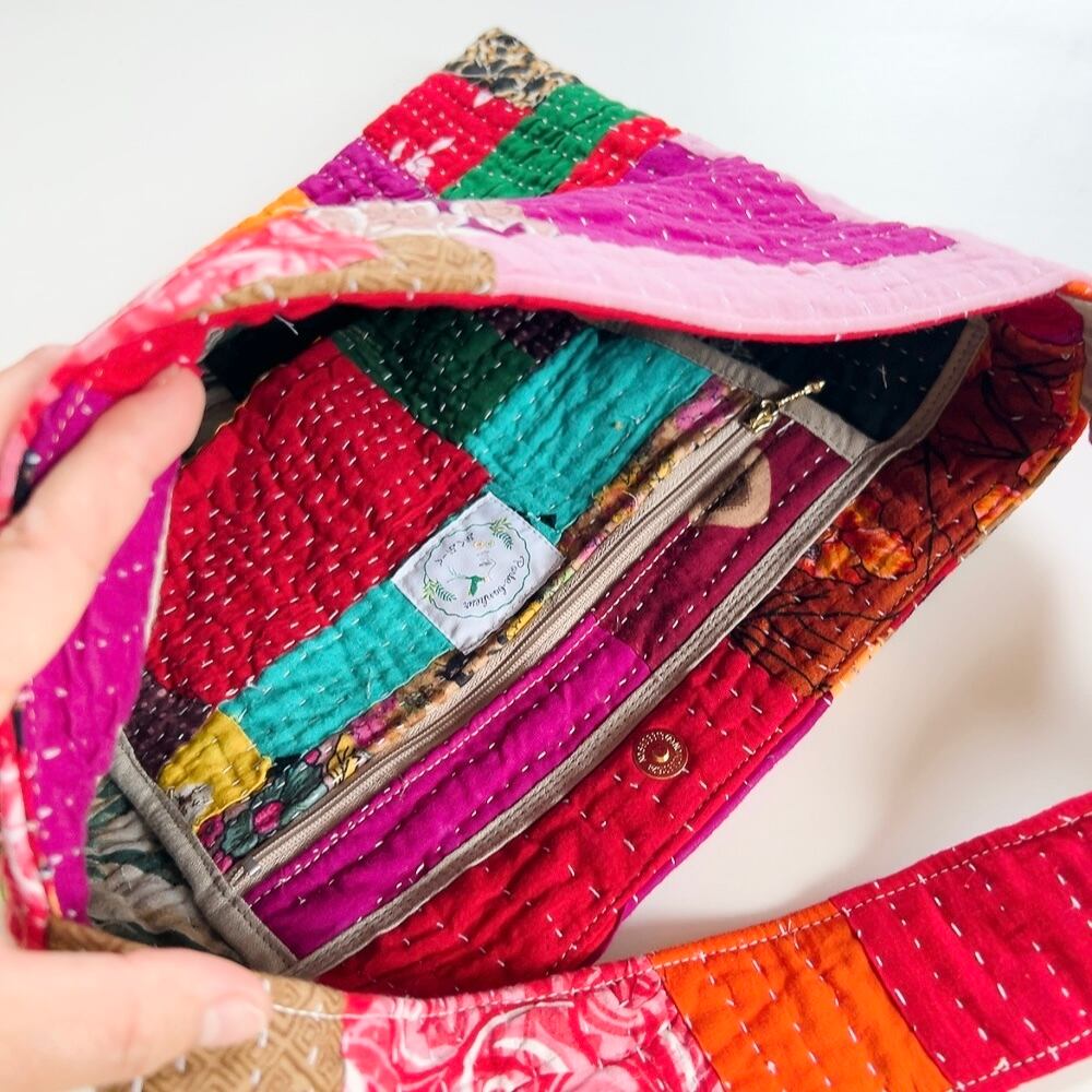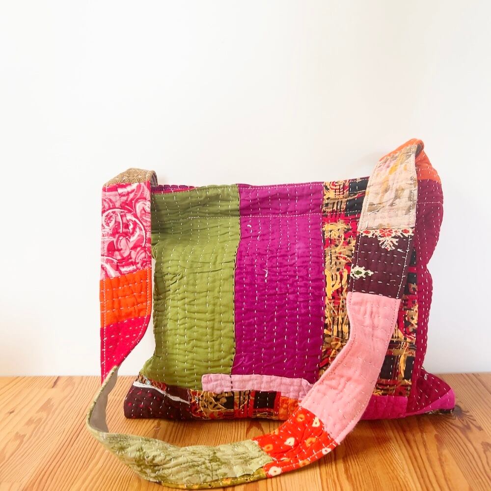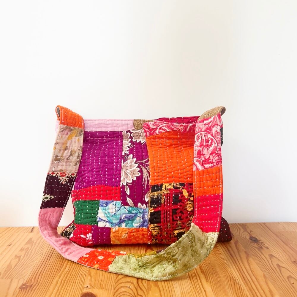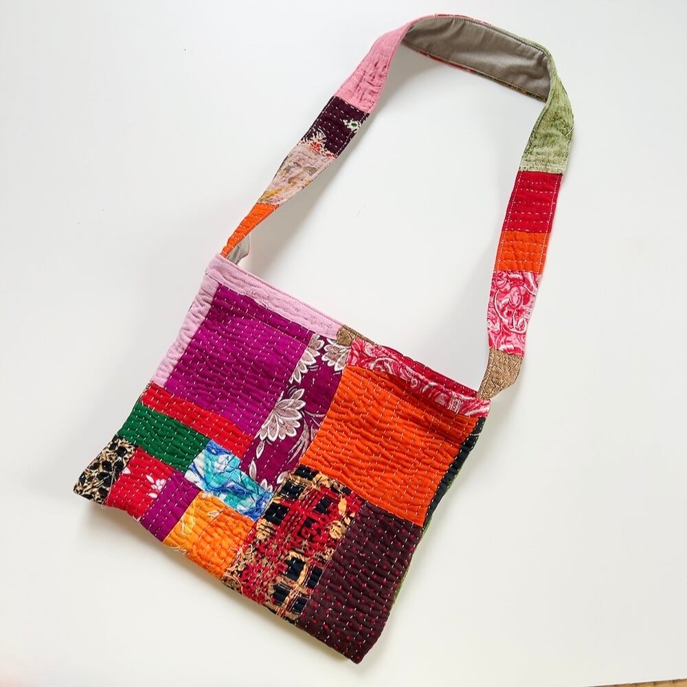 ラリーキルトを使用した、シンプルで可愛らしいショルダーバッグです。
