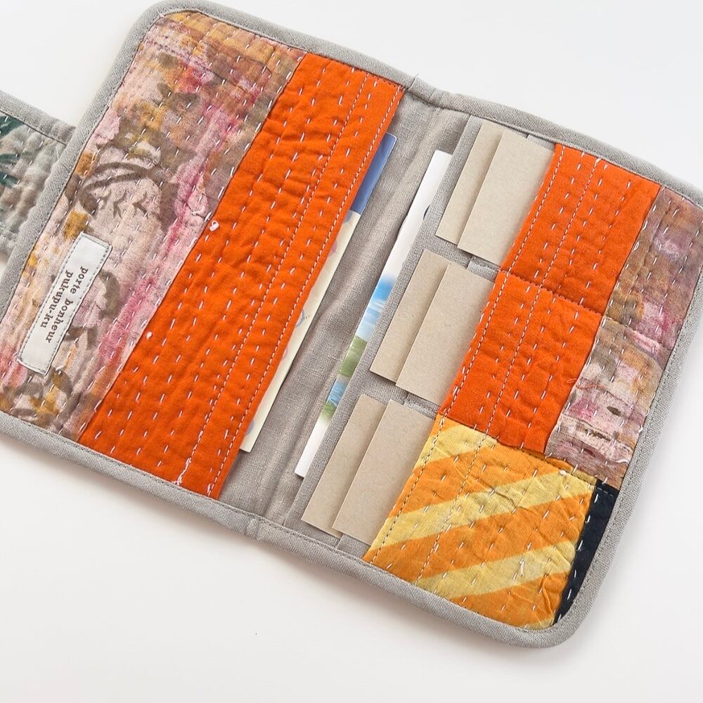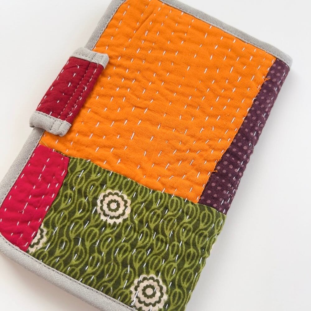ラリーキルトを使用した、実用的でオシャレなお薬手帳入れです。
