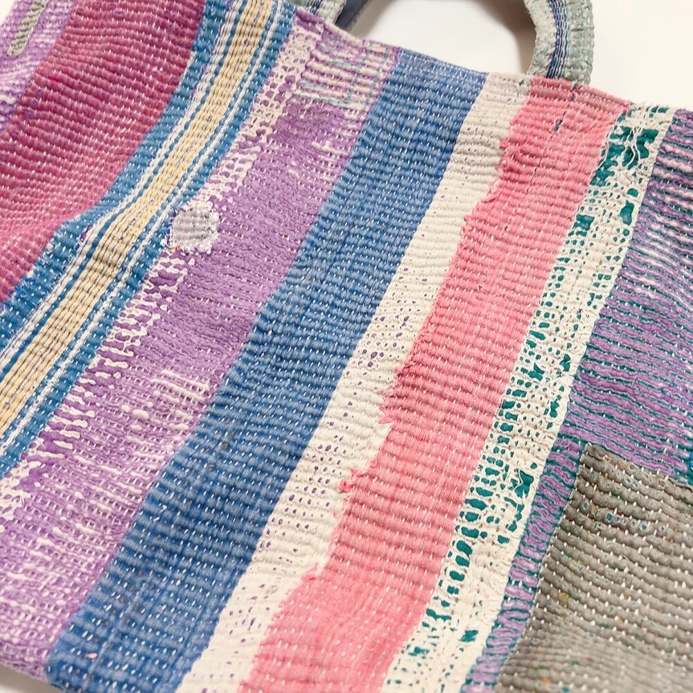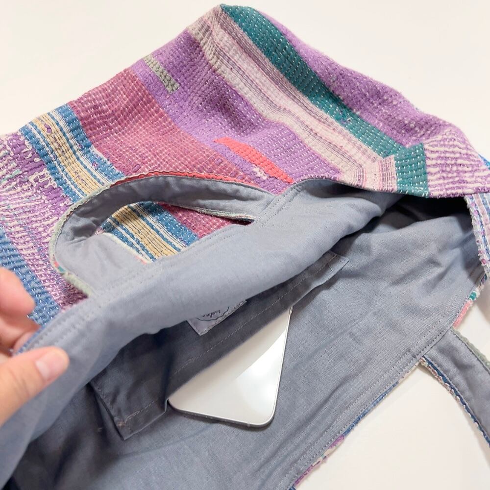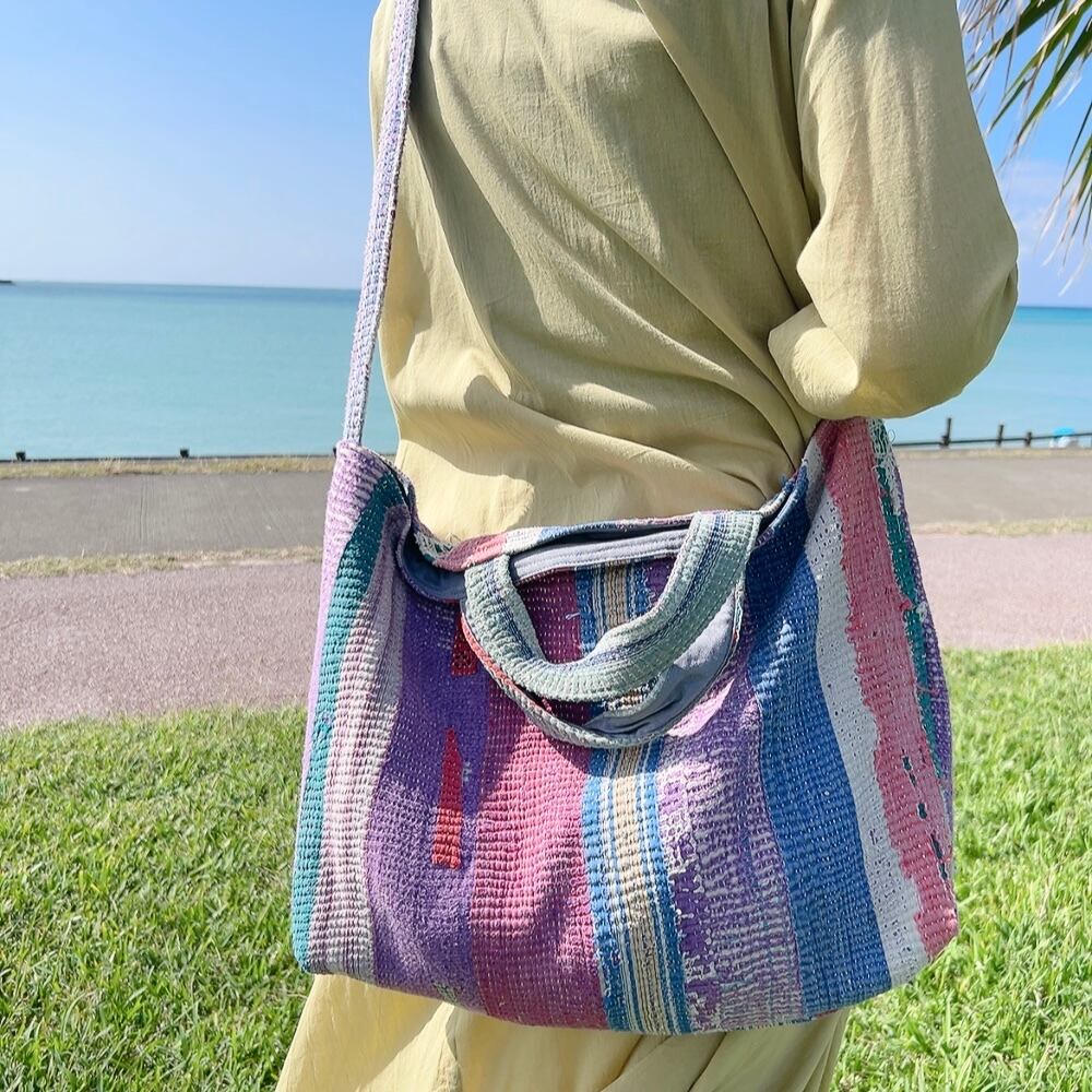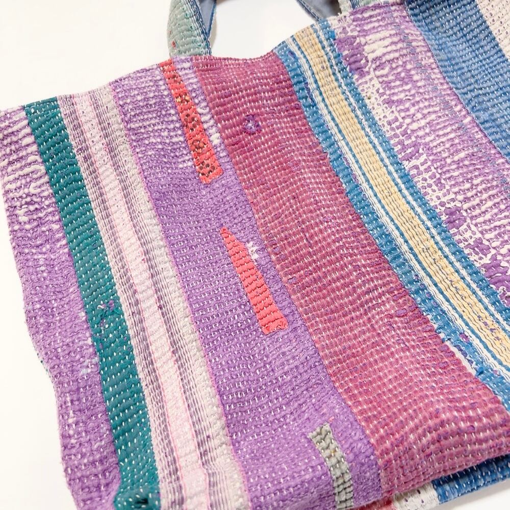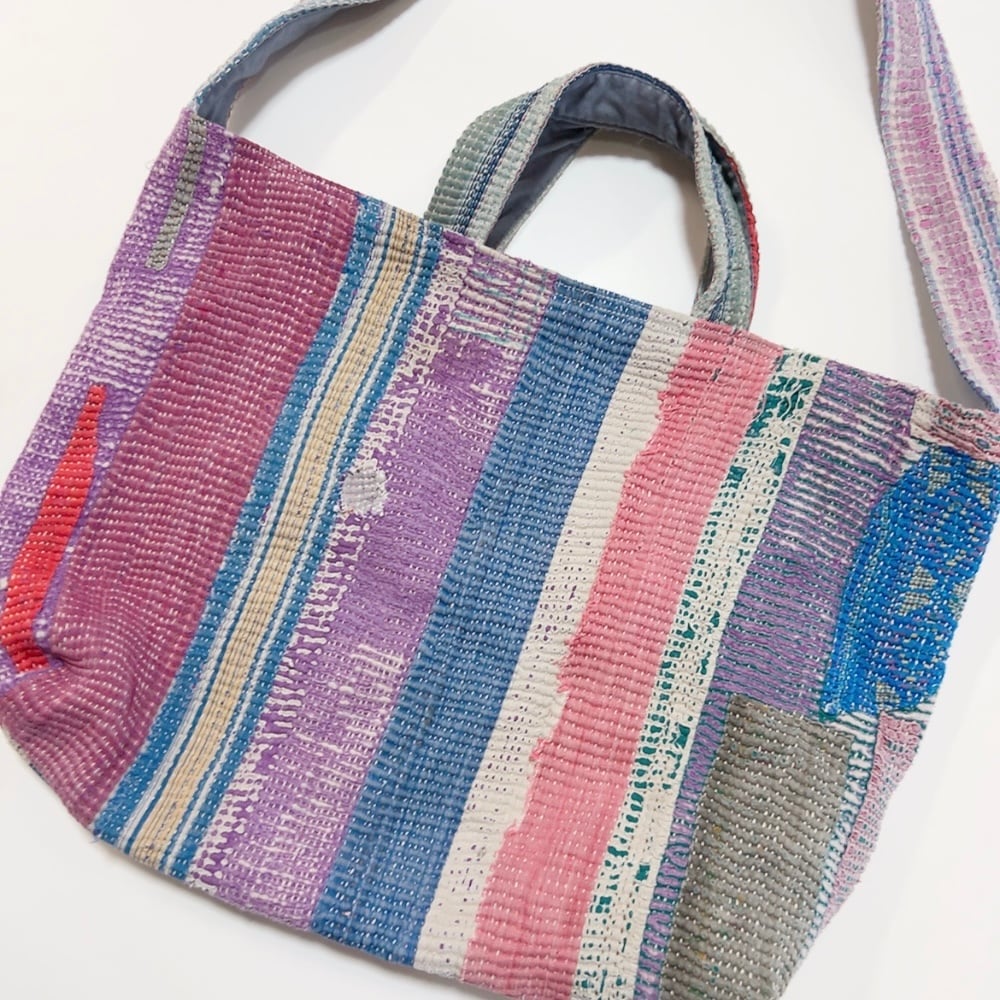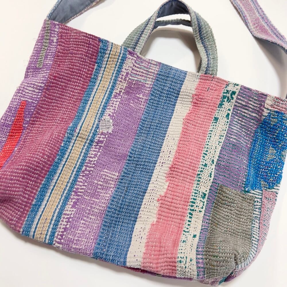 ヴィンテージ感漂うラリーキルトのトートバッグ。荷物もたっぷり入るので、大人の女性のおしゃれバッグとして、また普段のお買い物にもぴったりです。