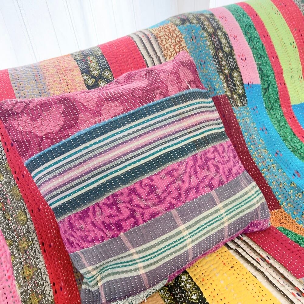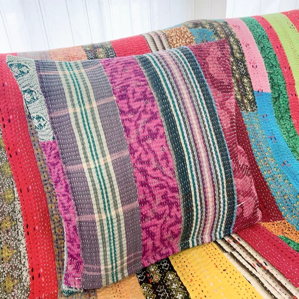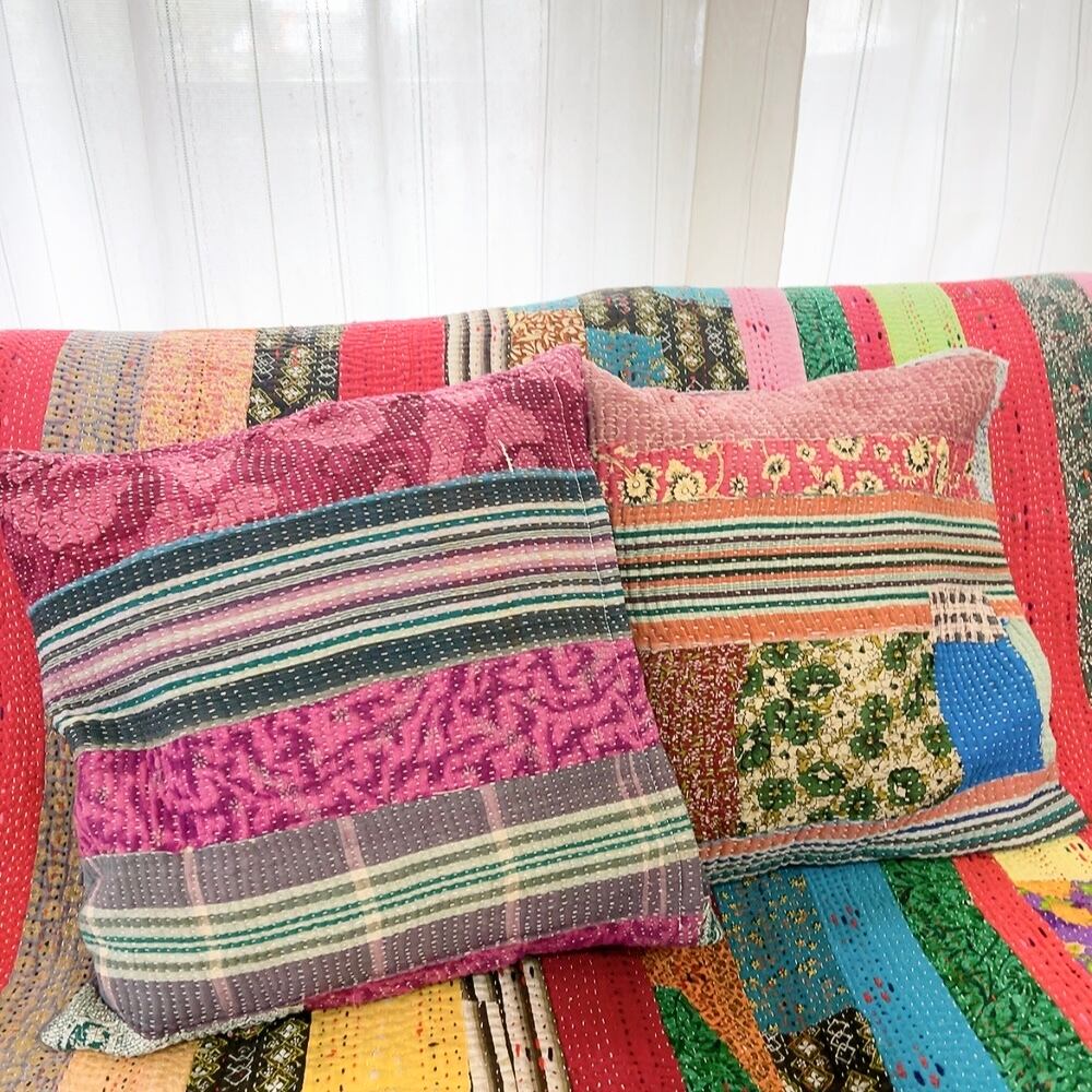 ラリーキルトを使用した、実用的でオシャレなクッションカバーです。