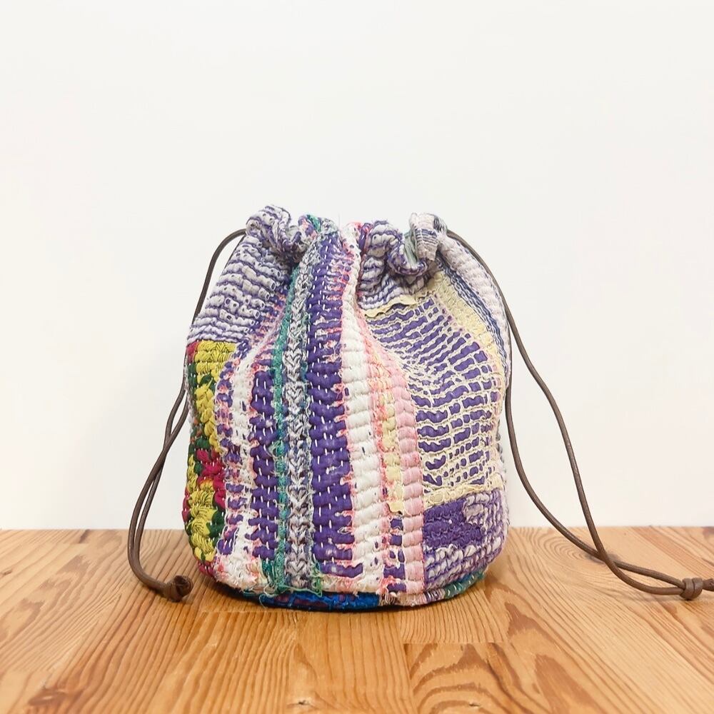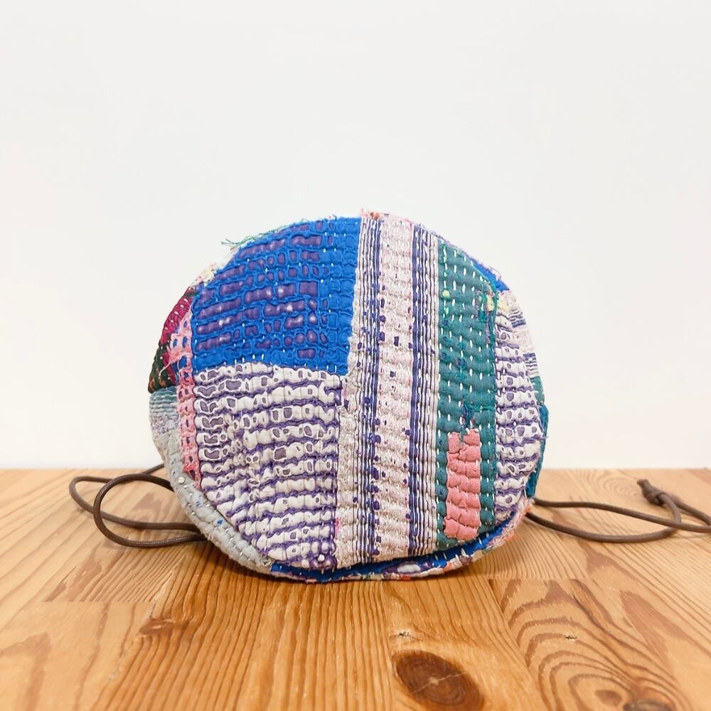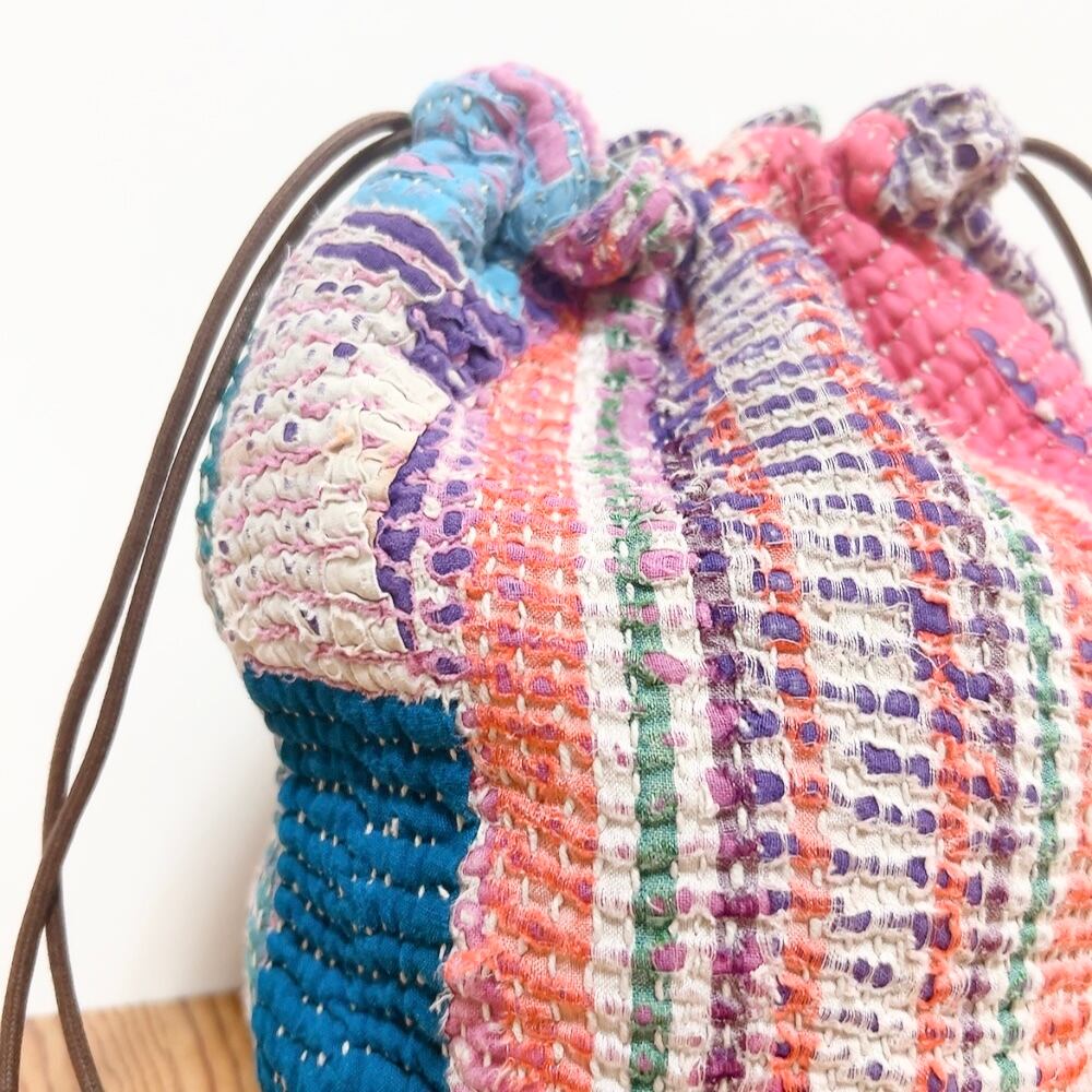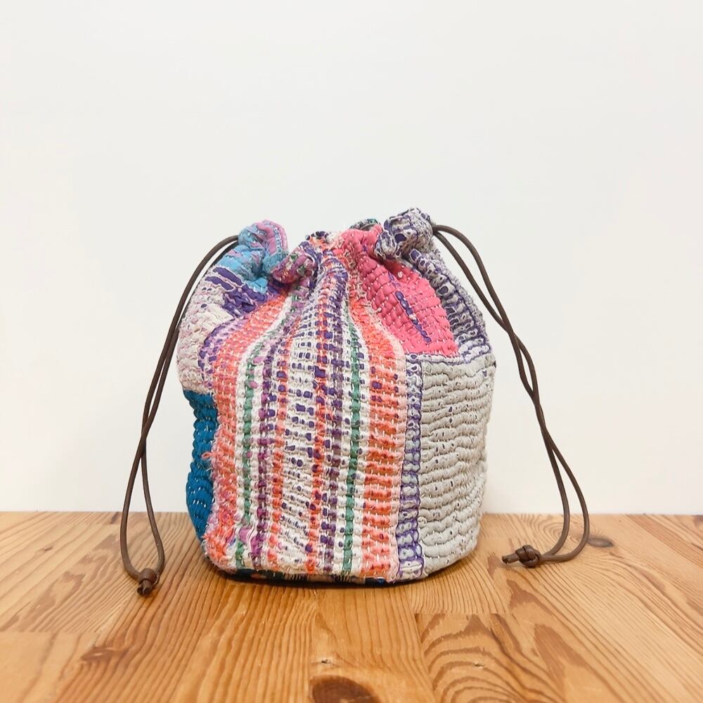 ヴィンテージラリーキルトの風合いを活かした、こだわりの巾着バッグです。