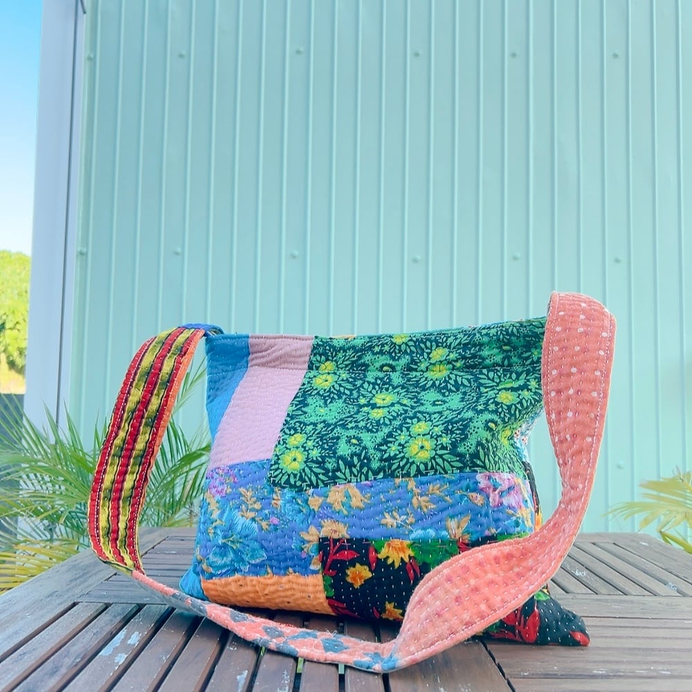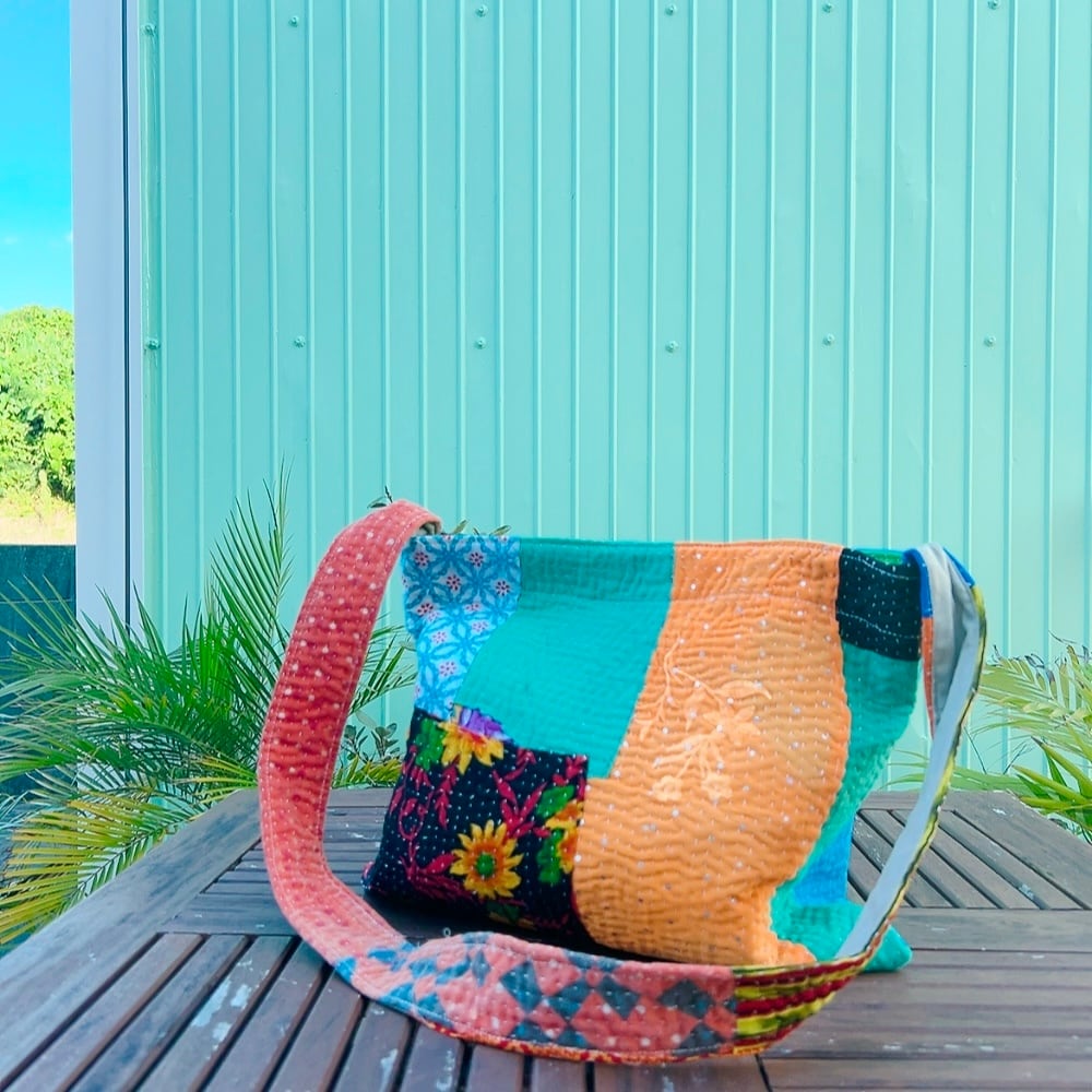 ラリーキルトを使用した、シンプルで可愛らしいショルダーバッグです。