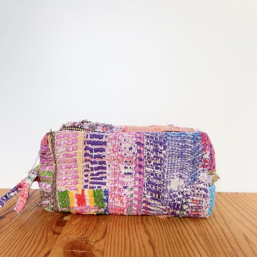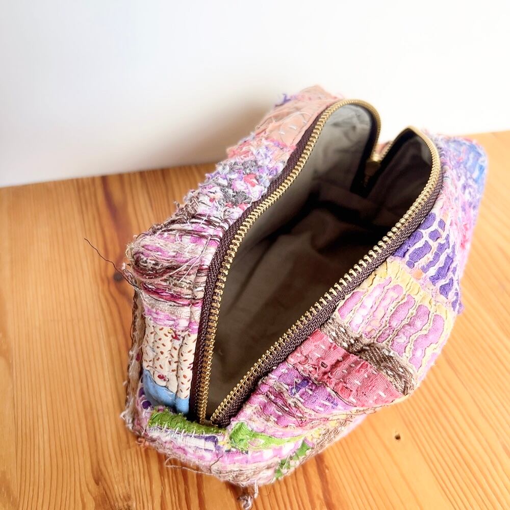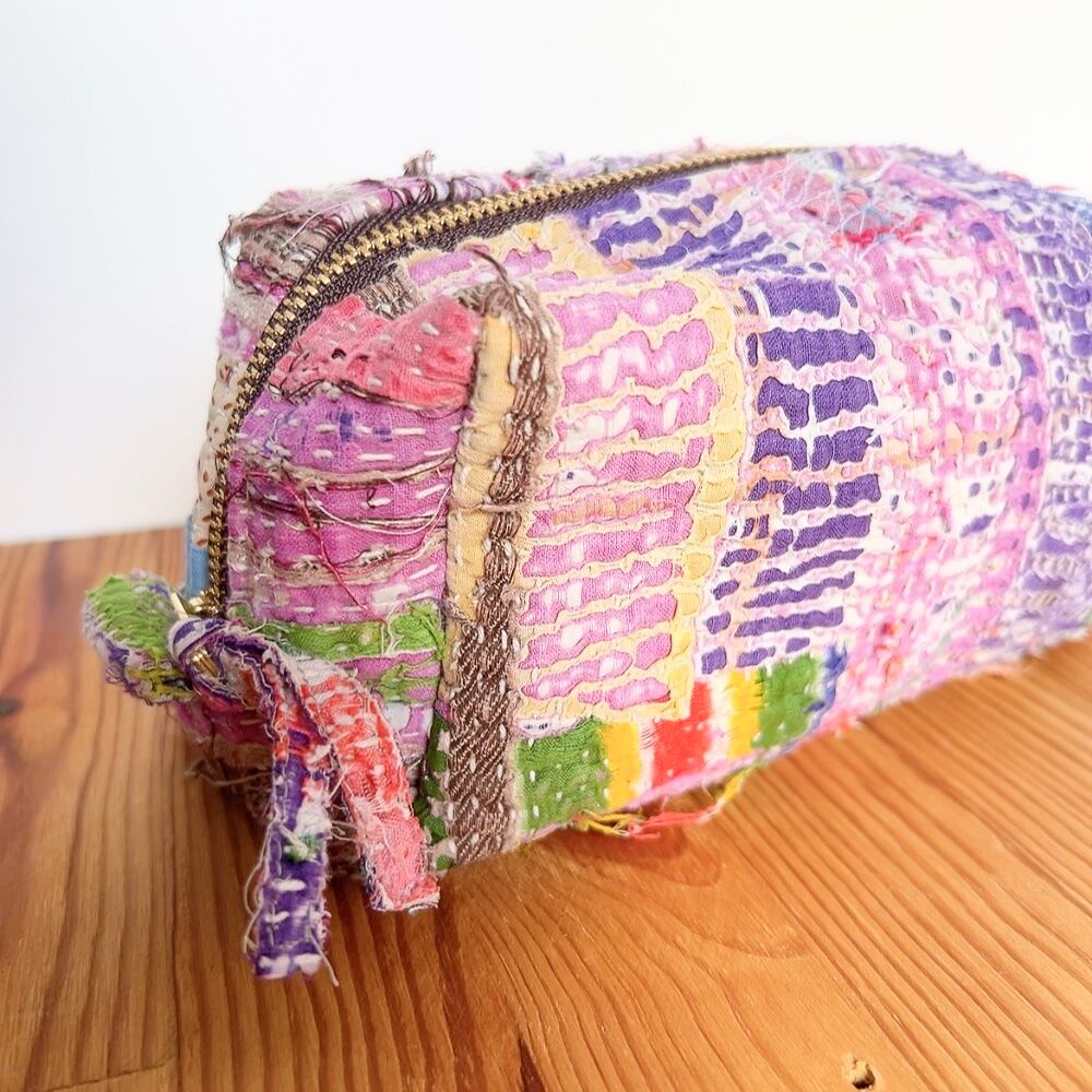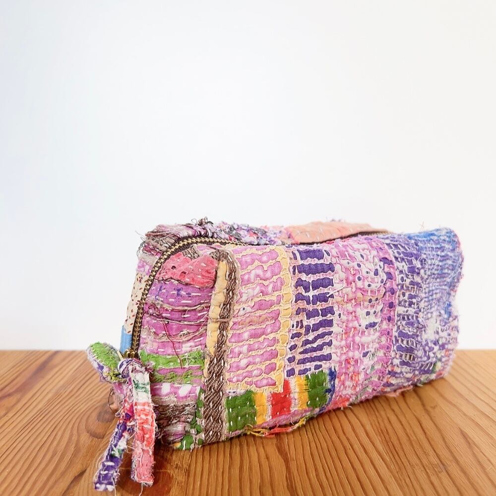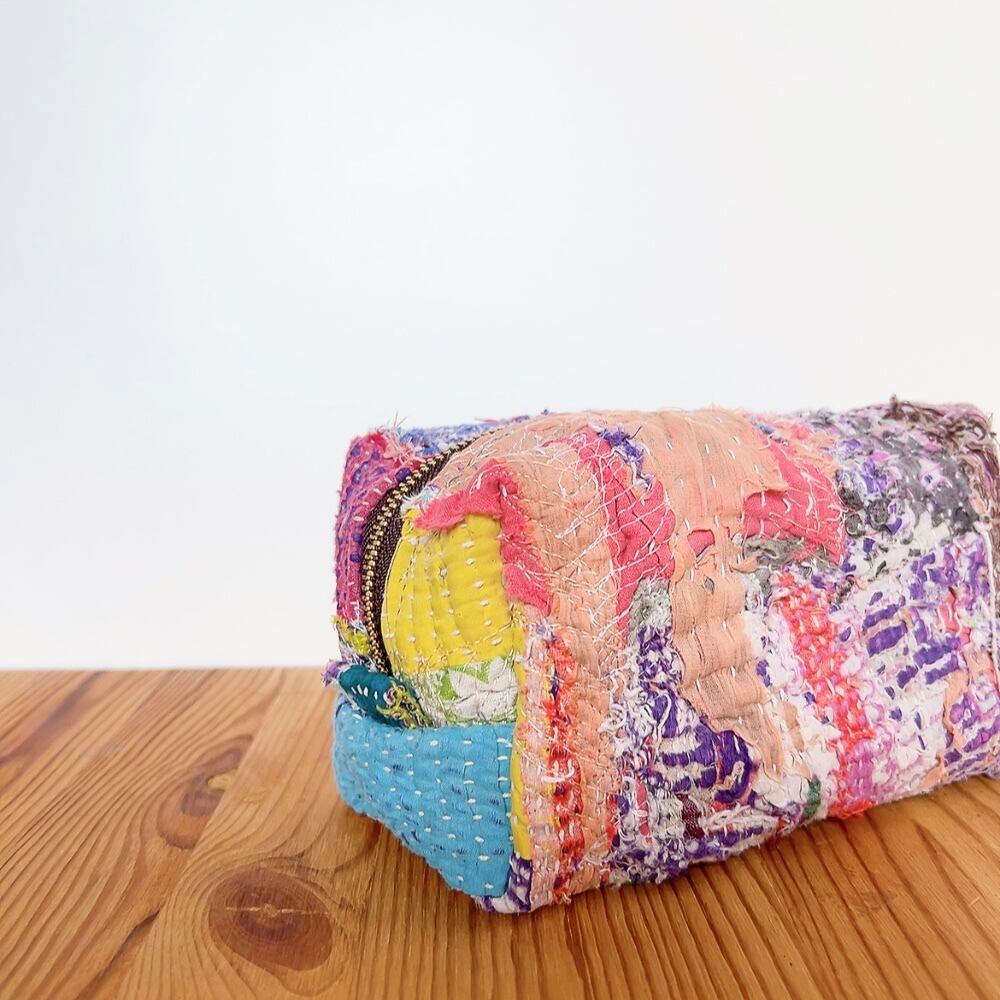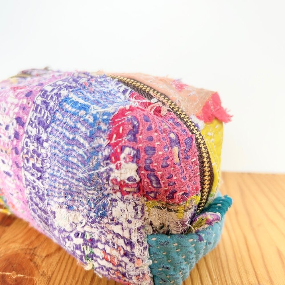 ボックスポーチは、ラリーキルトの魅力を存分に活かした、個性的なアイテムです。多彩なパッチワーク柄が施され、手作りの温かみを感じることができます。小物やコスメ、貴重品をスマートに収納できるので、外出時には欠かせない相棒となります。