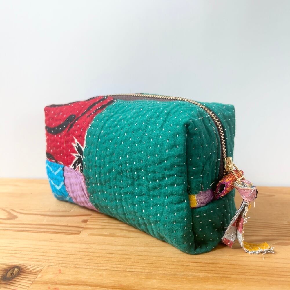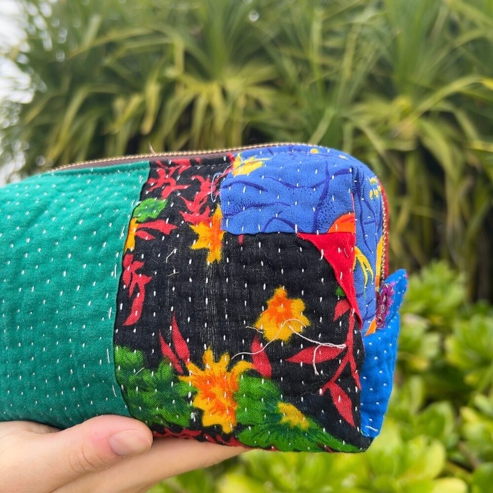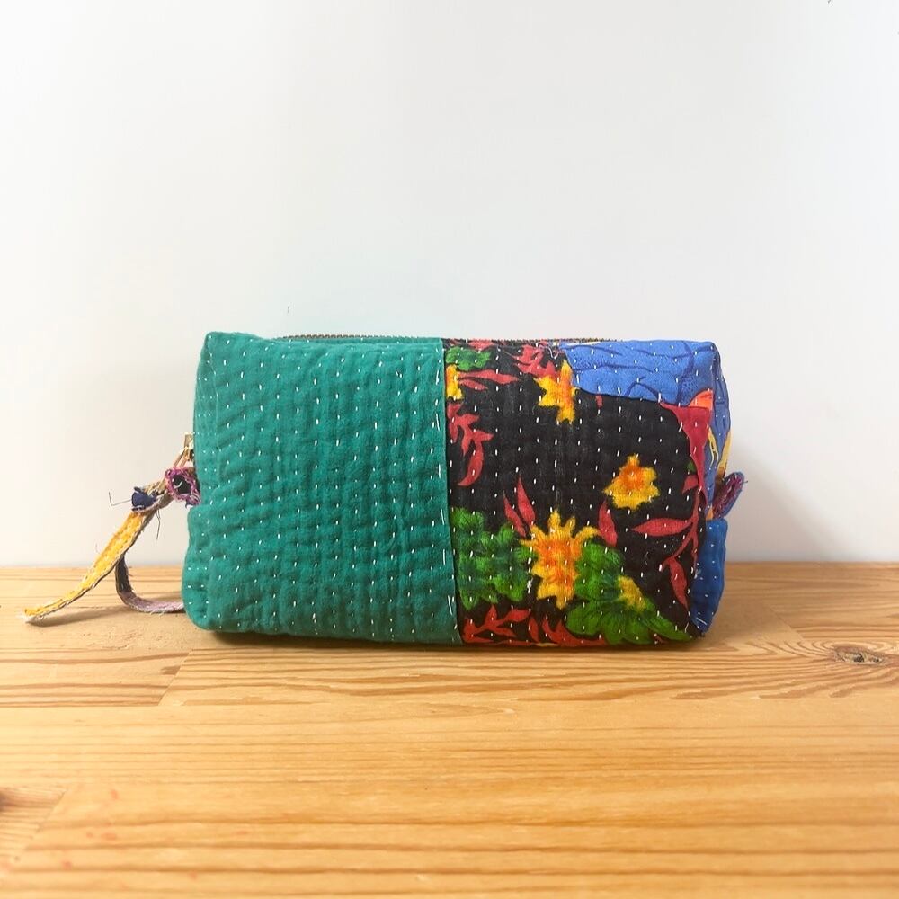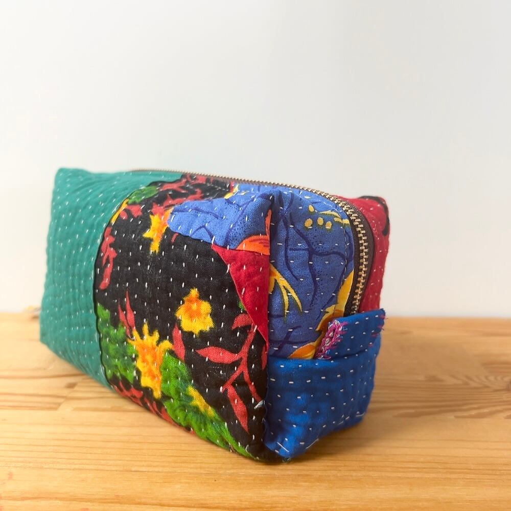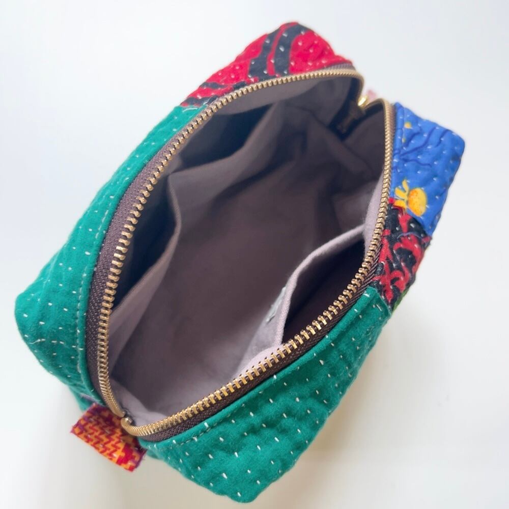 ボックスポーチは、ラリーキルトの魅力を存分に活かした、個性的なアイテムです。多彩なパッチワーク柄が施され、手作りの温かみを感じることができます。小物やコスメ、貴重品をスマートに収納できるので、外出時には欠かせない相棒となります。